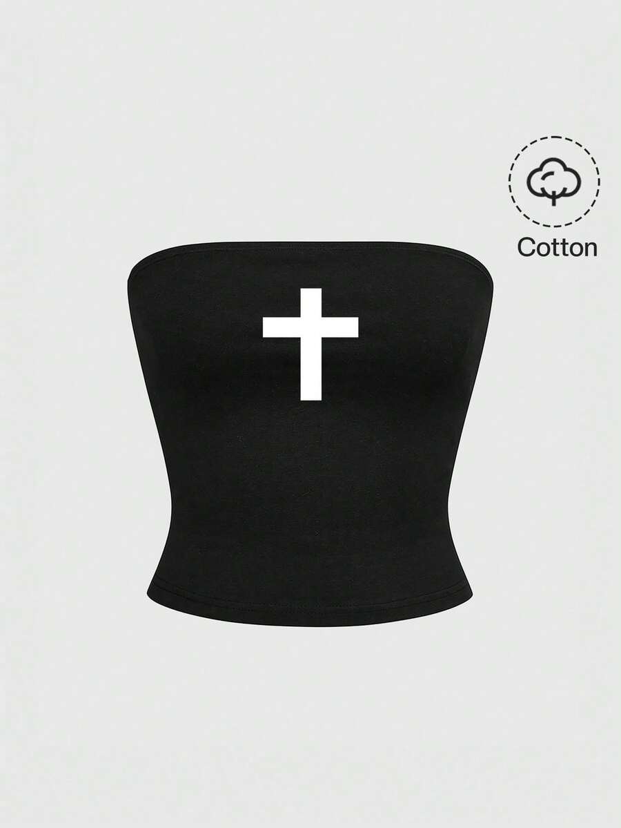 Goth Canotta gotica nera e bianca, misteriosa e sexy, da donna, stile dark witch horror