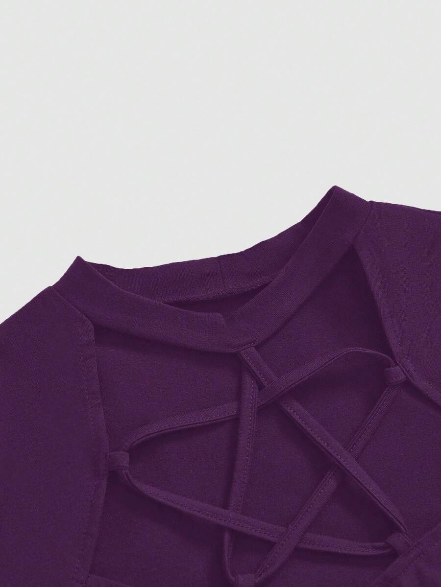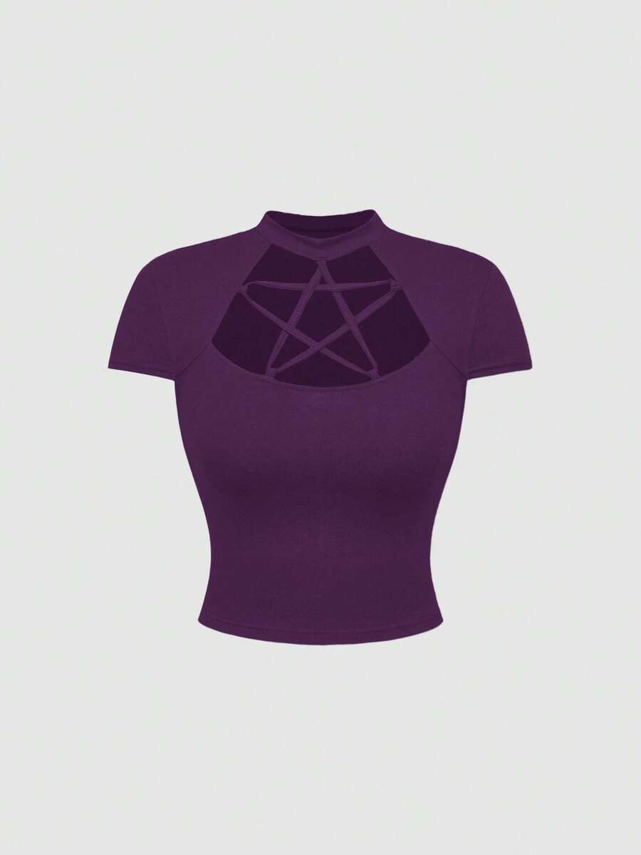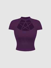 Goth Maglietta aderente con lacci e stella a cinque punte traforata, stile gotico