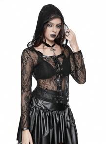 Goth Felpa con cappuccio in stile gotico con patch in pizzo e coulisse, adatta per Ognissanti, può essere indossata come strato interno o esterno, per tutte le stagioni