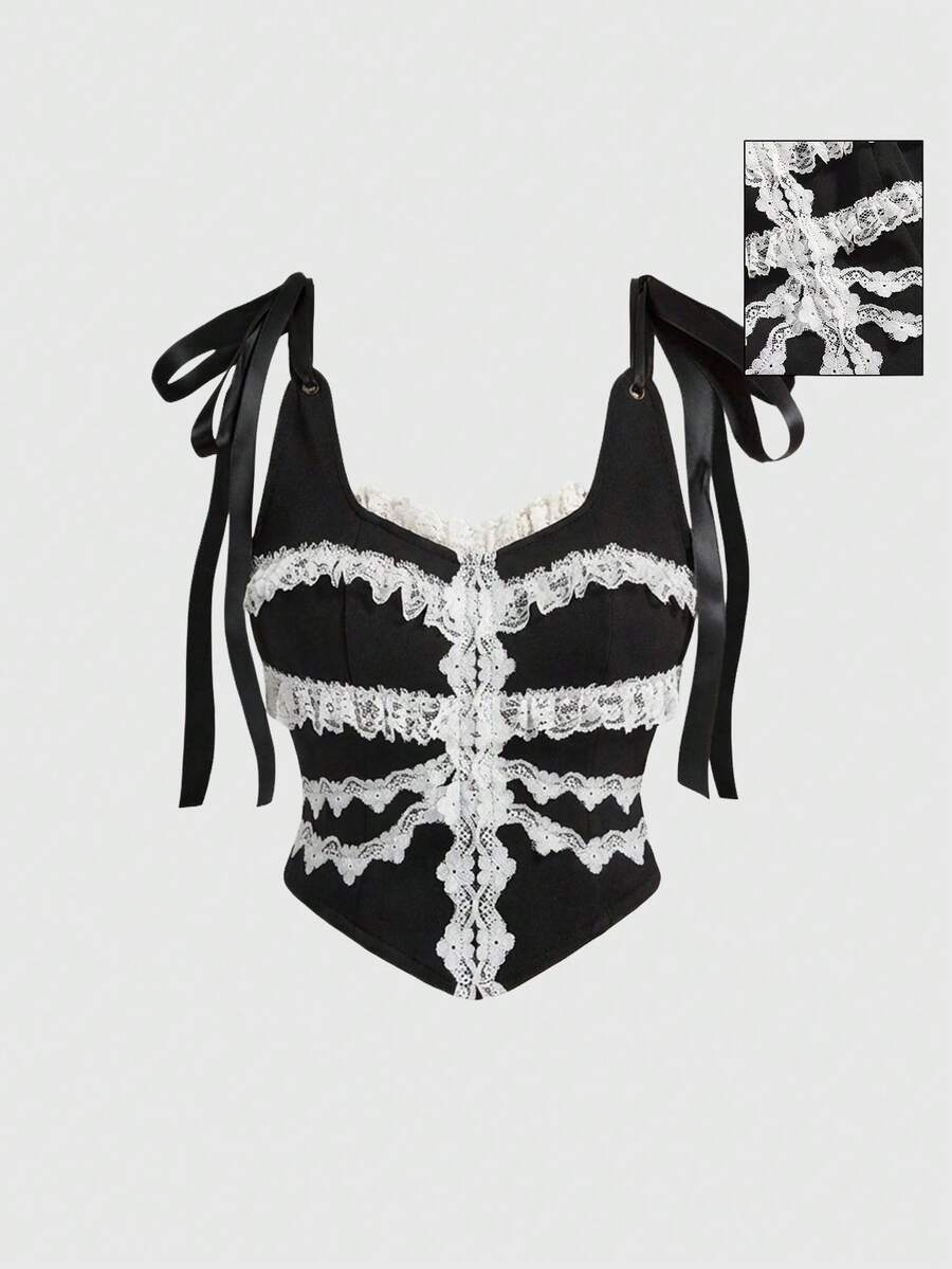 Goth Canotta in velluto con bordo in pizzo e spalline per donne in stile gotico