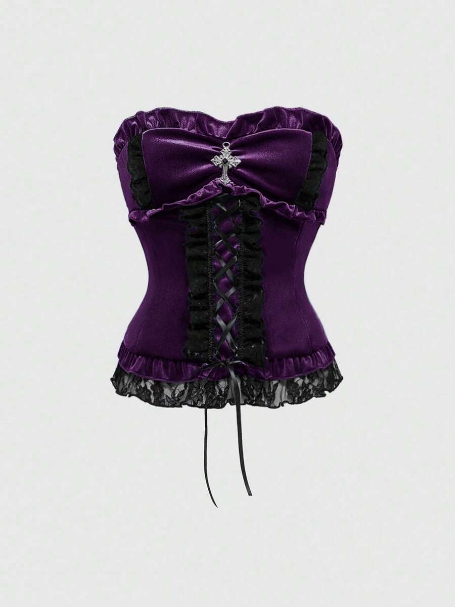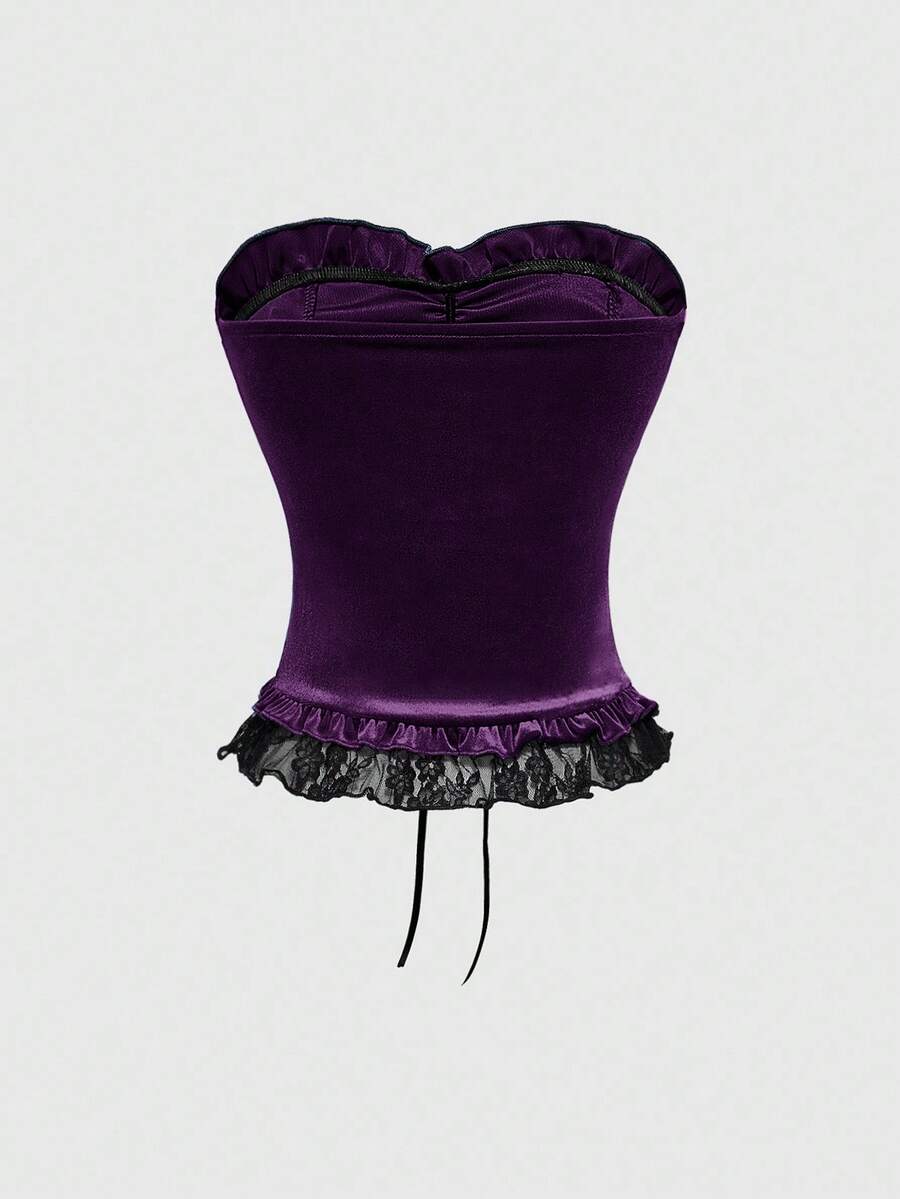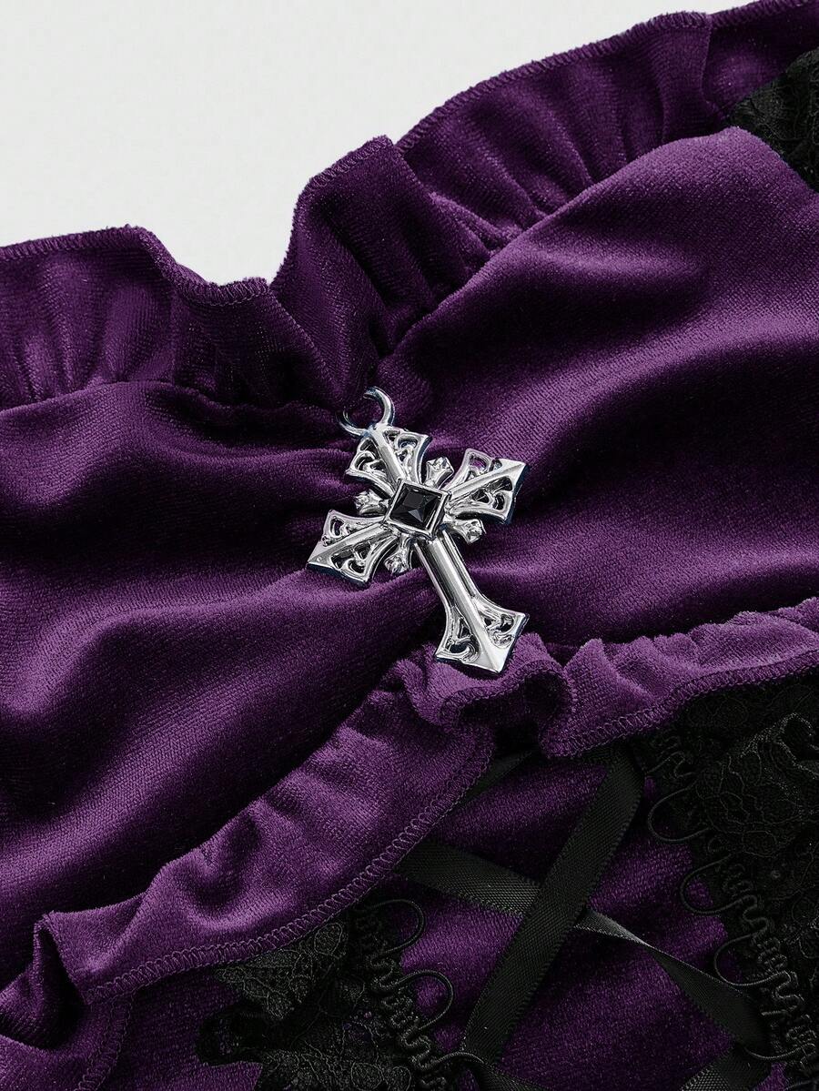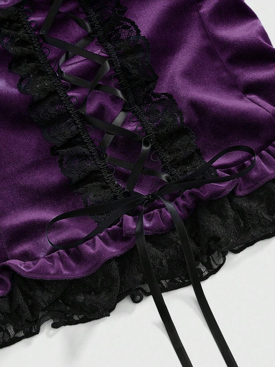 Goth Top tubo in velluto con bordo in pizzo stile gotico per donna
