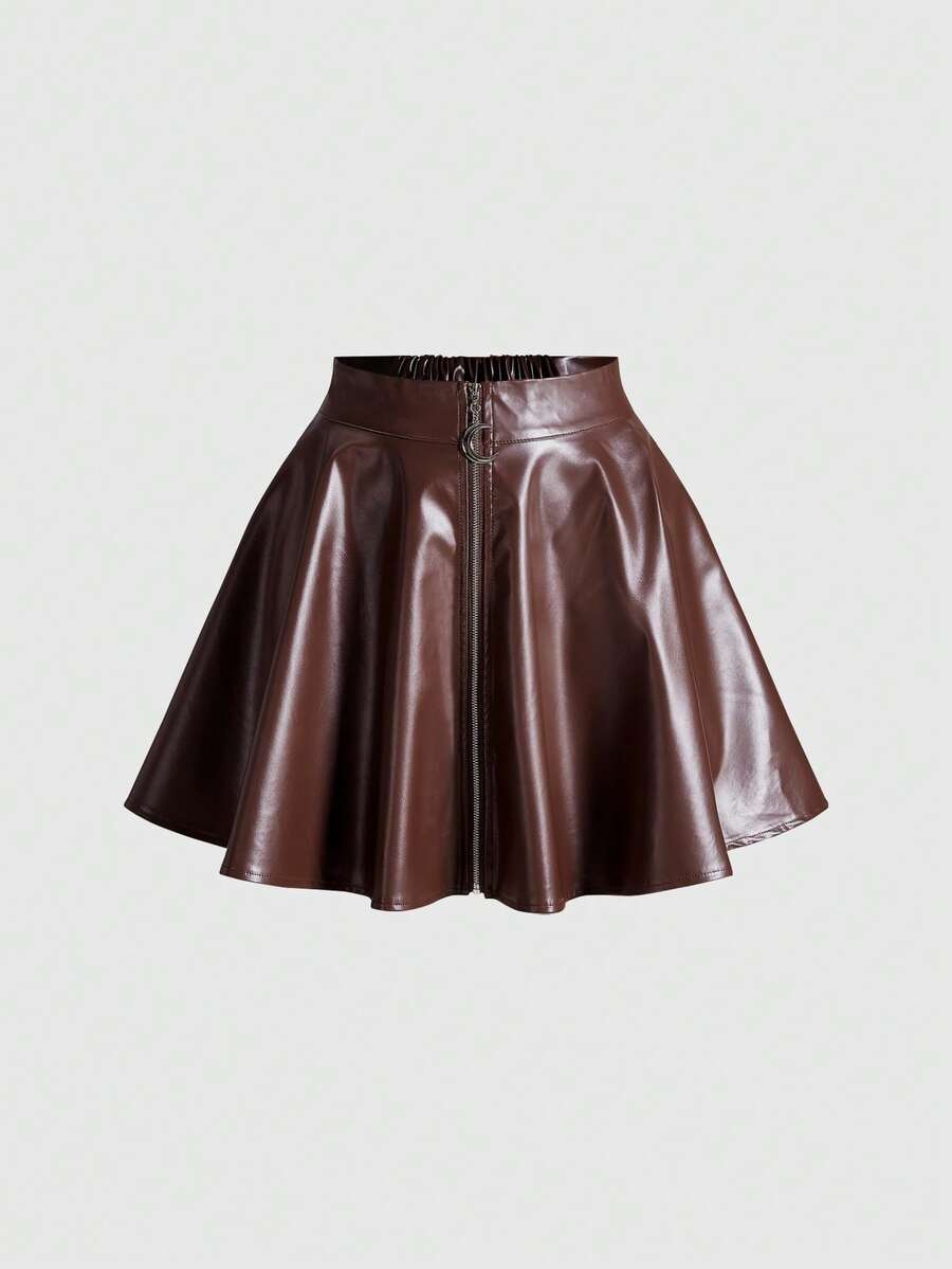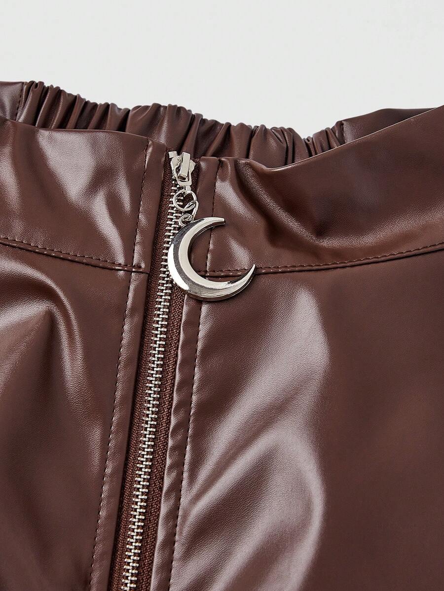 Goth Gonna a-line in stile gotico e misterioso, in PU nero classico, con cerniera frontale e pendente a forma di luna, per donne