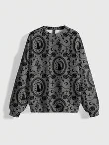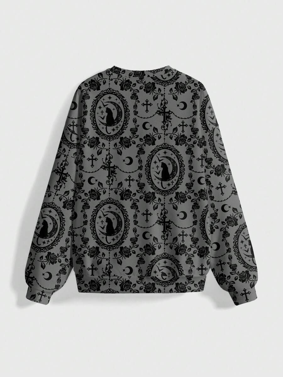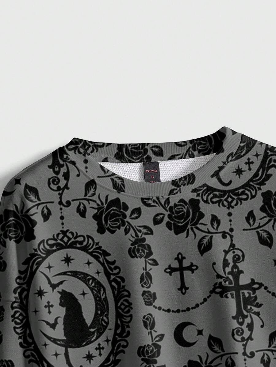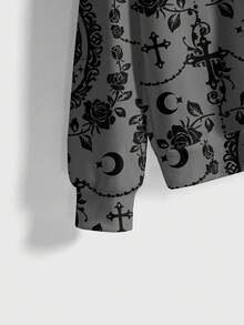 Goth Felpa con cappuccio da donna con motivo floreale a rose e croce in stile gotico