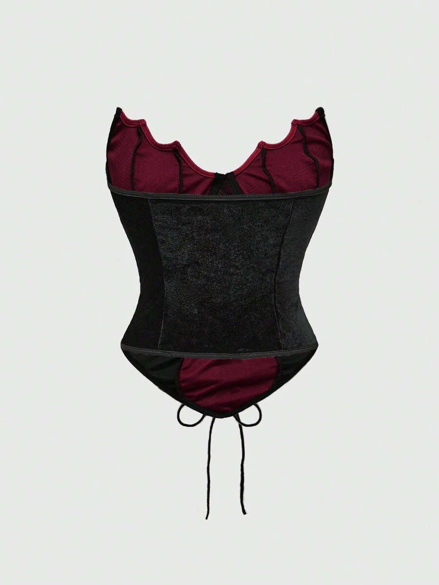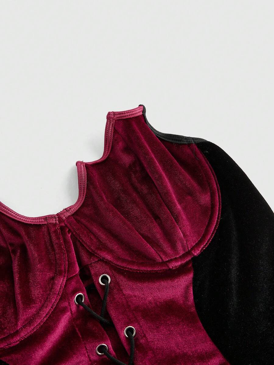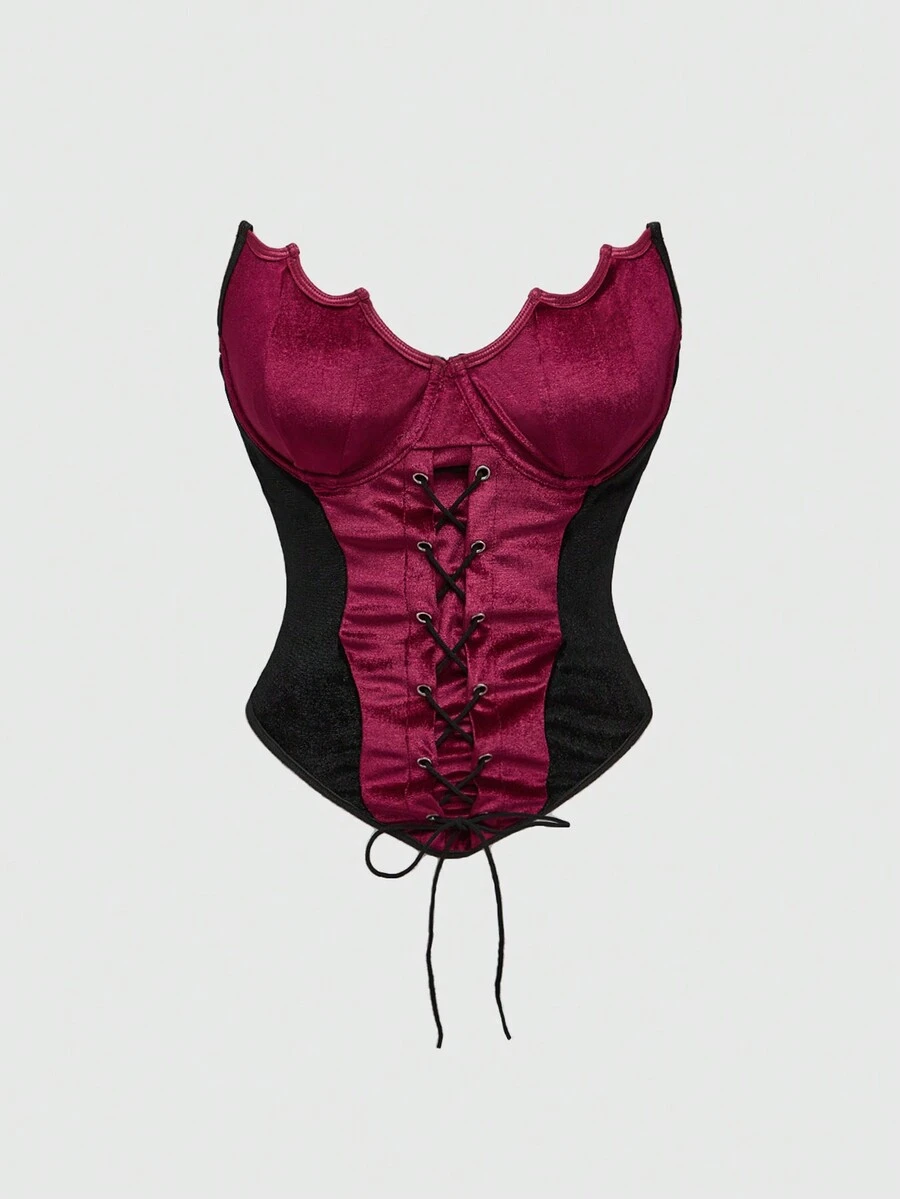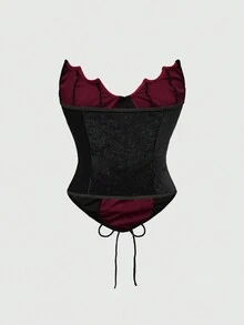Goth Top senza spalline in stile vampiro, con taglio a pipistrello e patchwork in velluto, stile gotico, adatto per Ognissanti