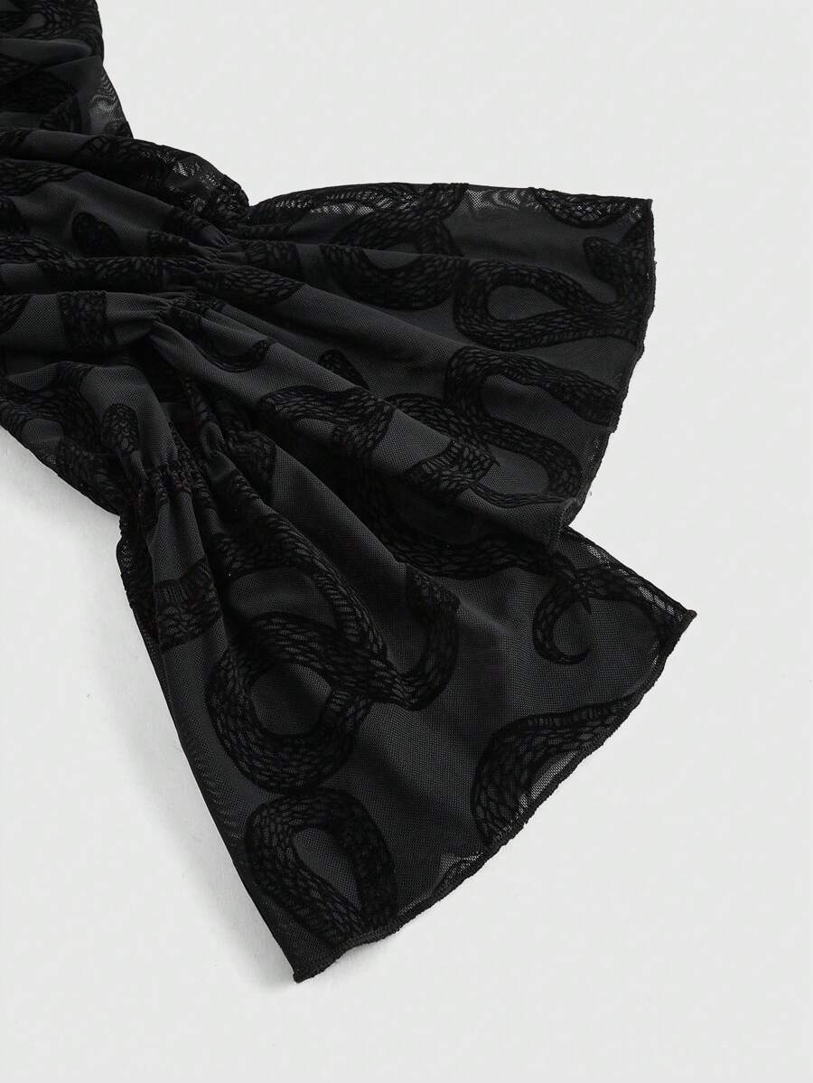 Goth Top con spalle scoperte, stile palazzo gotico, con stampa di serpente floccato