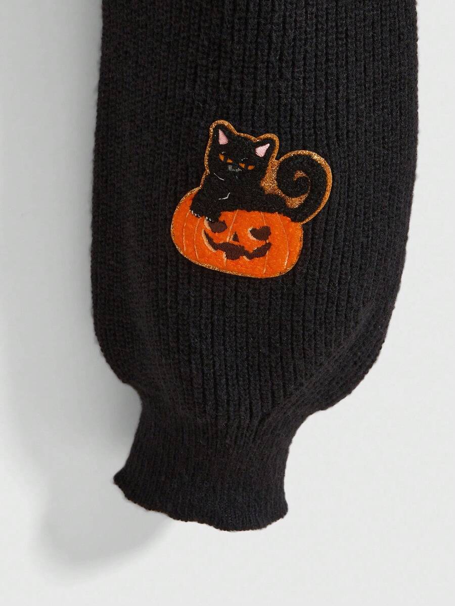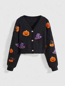 Goth Cardigan lavorato a maglia con grafica gotica di zucca e strega
