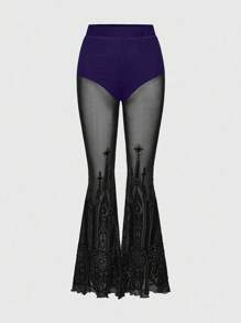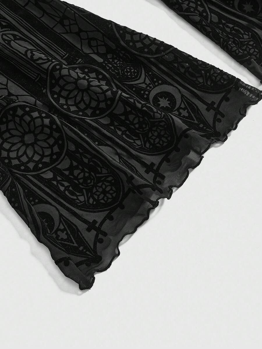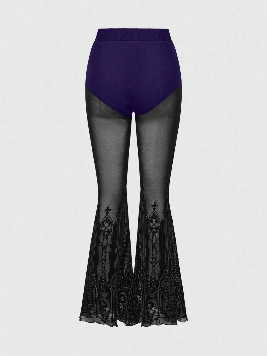 Goth Pantaloni a zampa da donna in stile gotico retrò con stampa floccata di