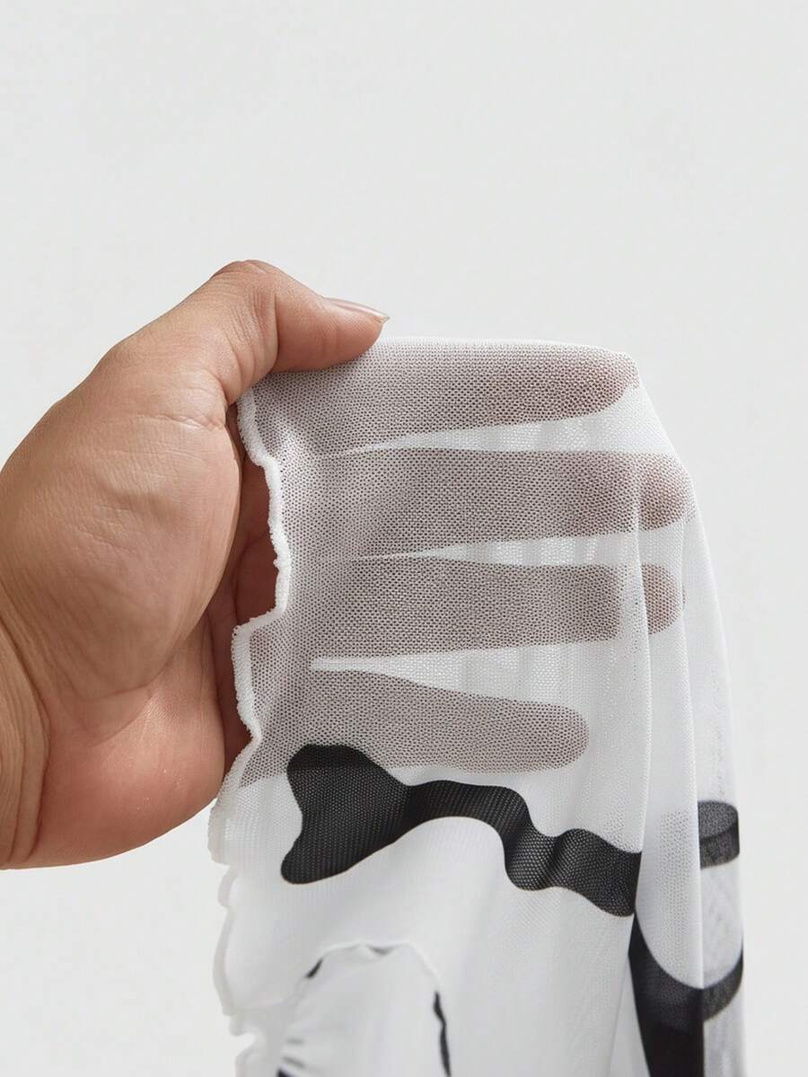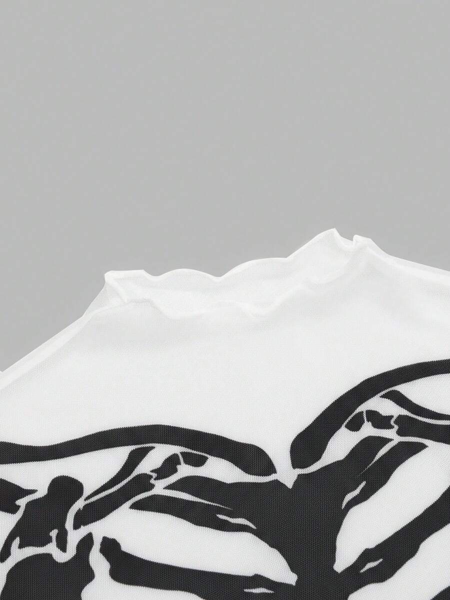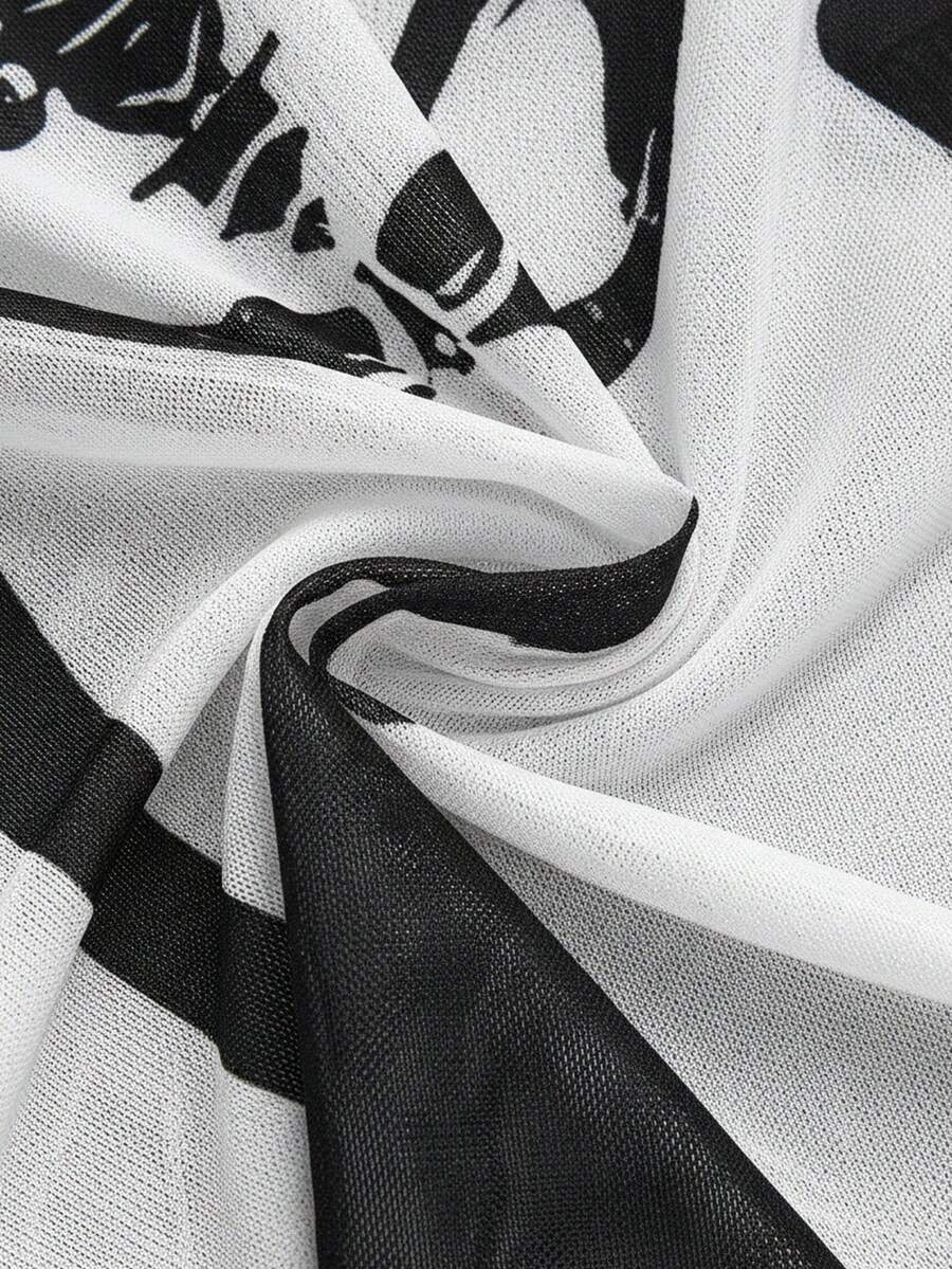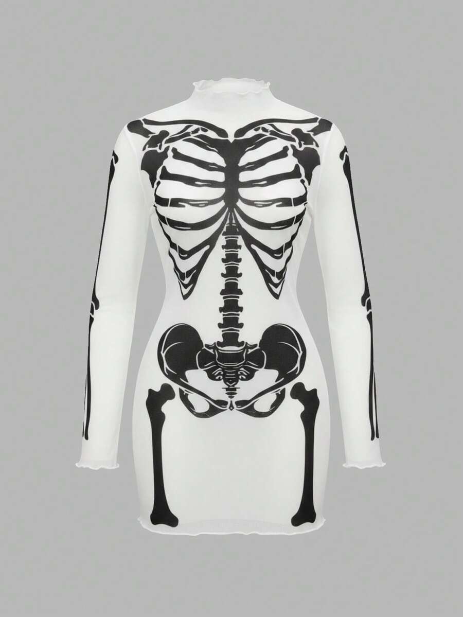 Goth Abito mini gotico e sexy in tulle con scheletro floccato per donne