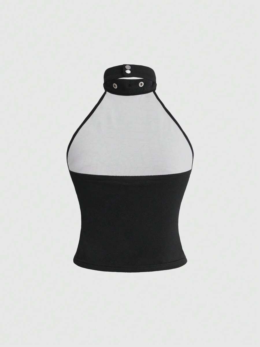 Goth Top corto aderente con motivo bruciato a ragnatela gotico