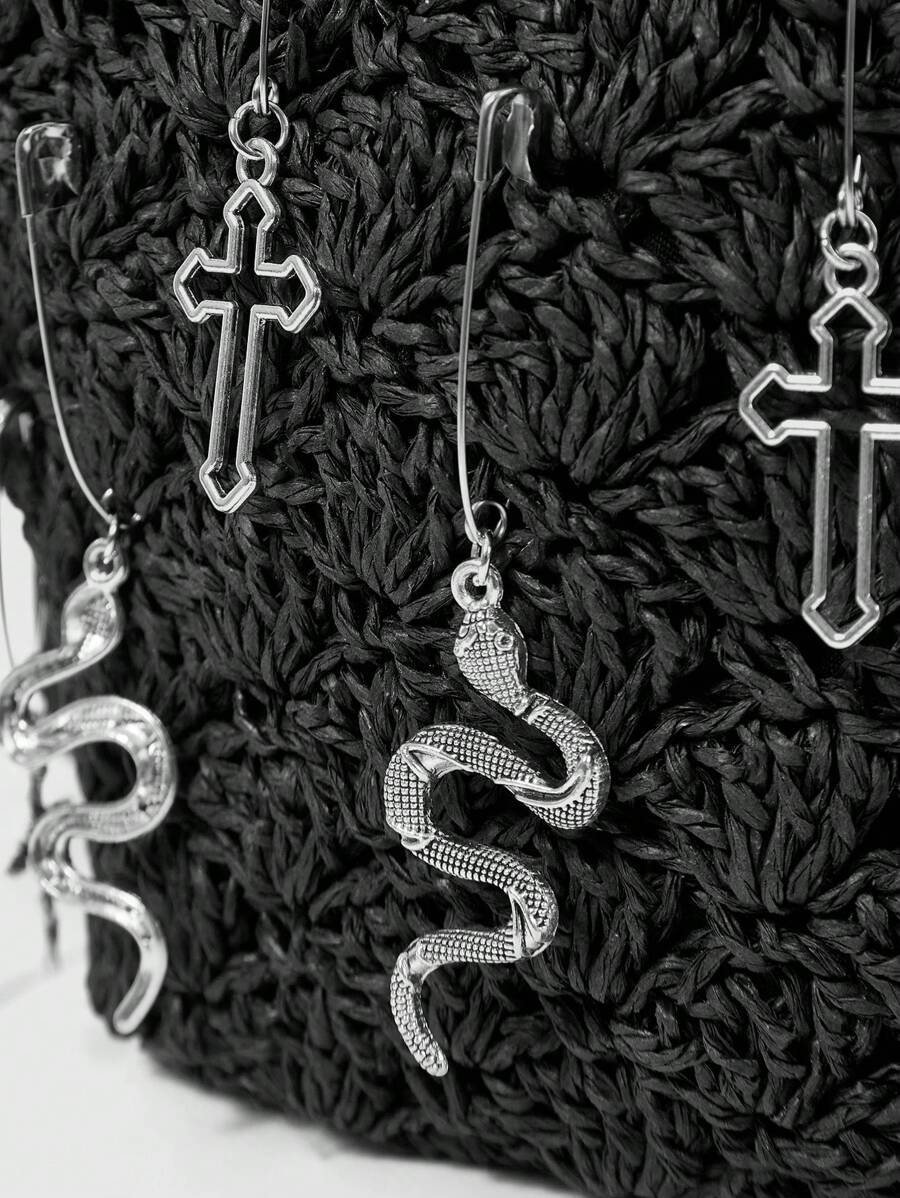Goth Borsa da donna in stile gotico con motivi a croce, serpente e fiocco intrecciato, perfetta per Ognissanti e feste in maschera, ideale per abbinare i costumi di Ognissanti