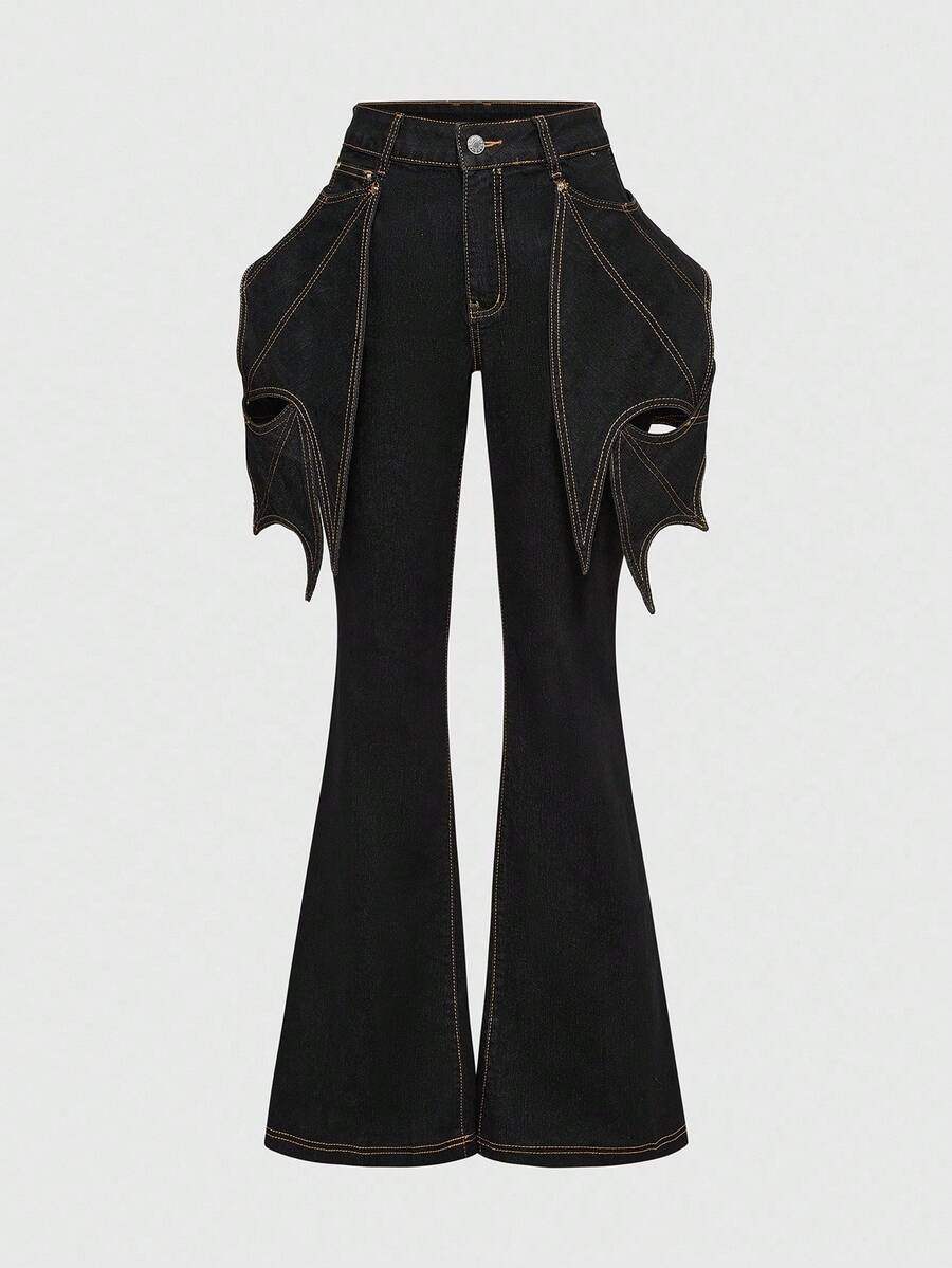 Goth Jeans a zampa di donna con design ad ali di pipistrello in stile gotico per Ognissanti