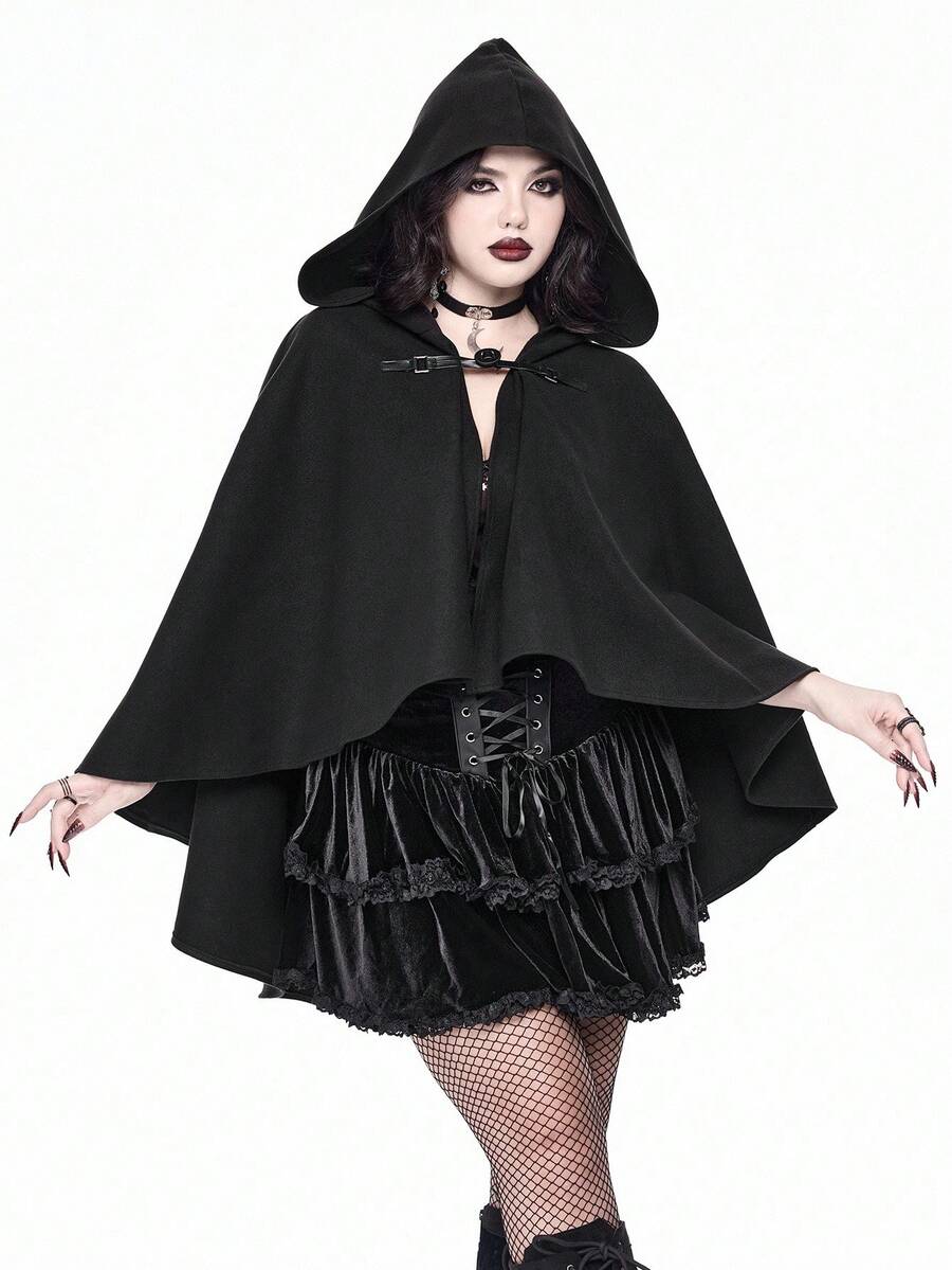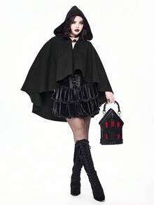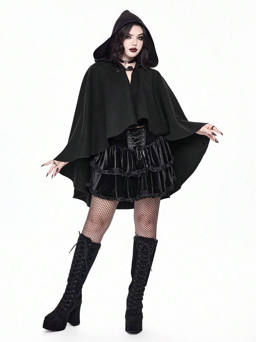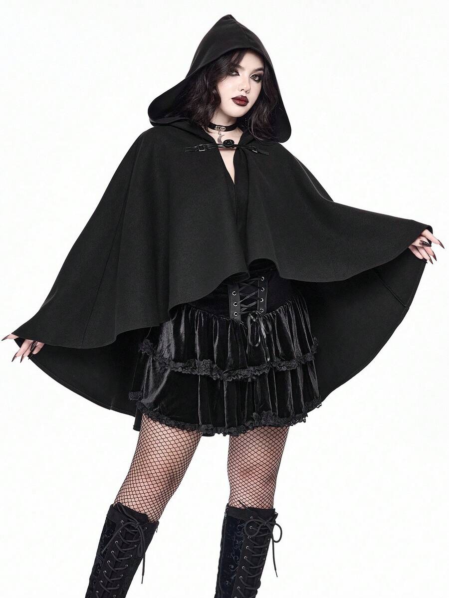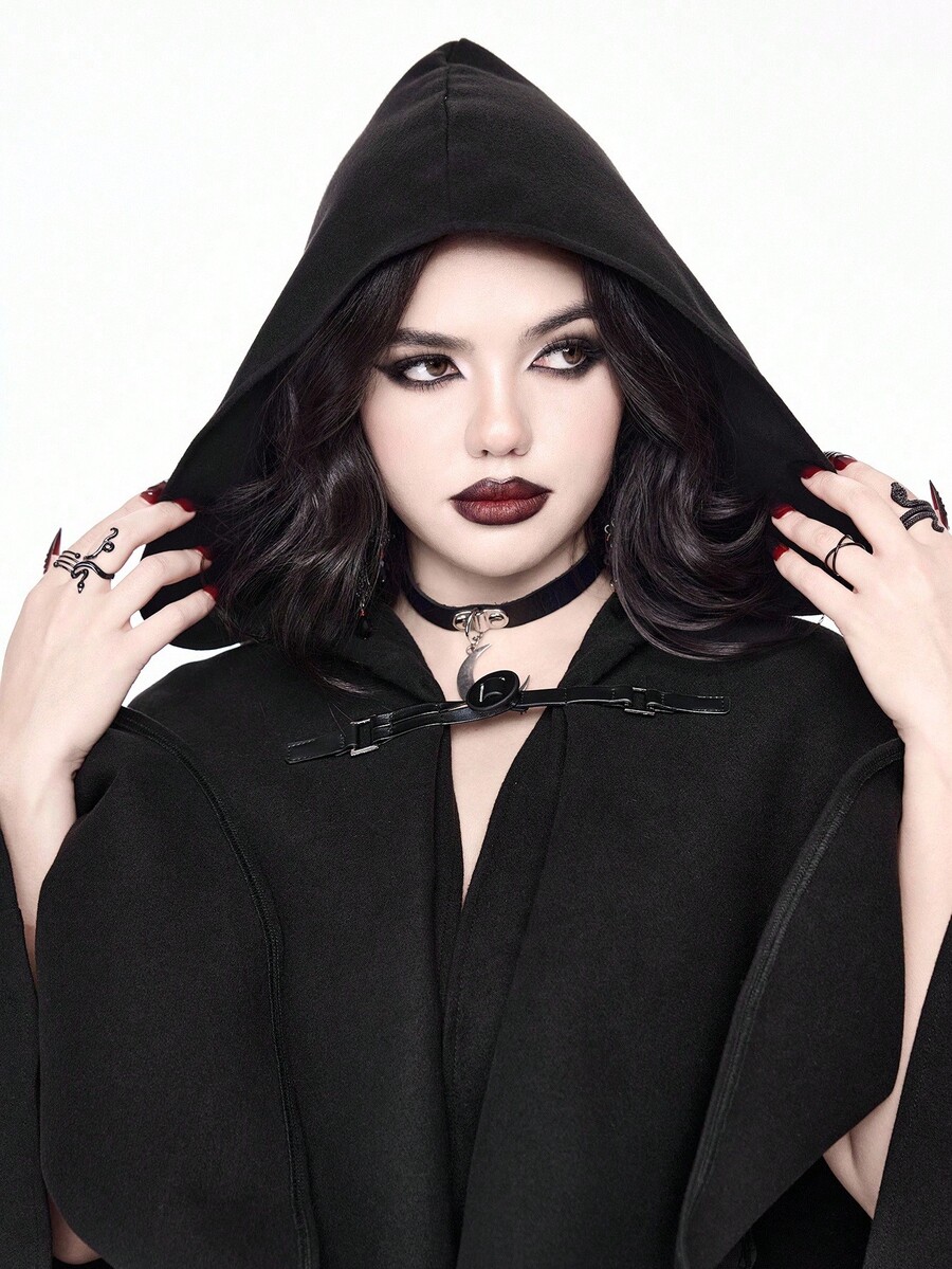 Goth Mantello lungo con cappuccio in stile gotico in lana per donna