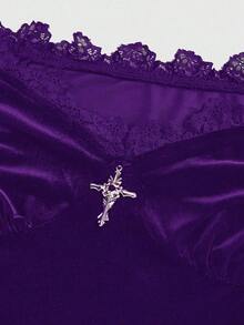 Goth Blusa aderente in velluto con scollo a spalle scoperte, maniche a campana in pizzo, stile gotico per donna