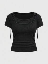 Grunge Punk Maglietta aderente con design distressed stile punk Y2K, taglia comoda, colore unito versatile