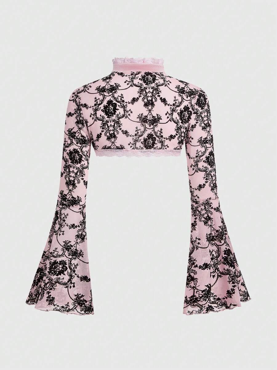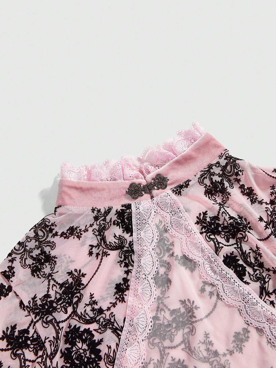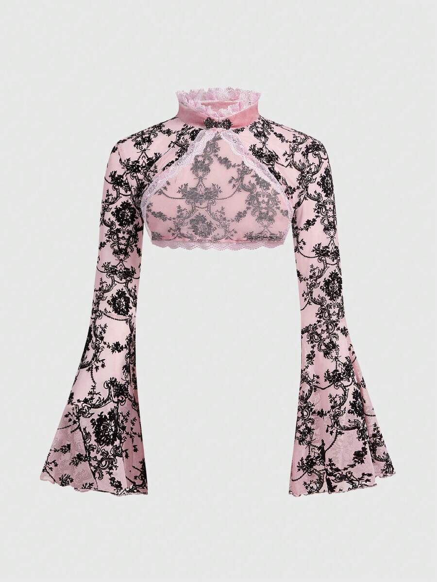 Goth Cardigan retrò da donna con maniche a sbuffo e spacchi, con motivo floccato a viticci, versatile in stile gotico