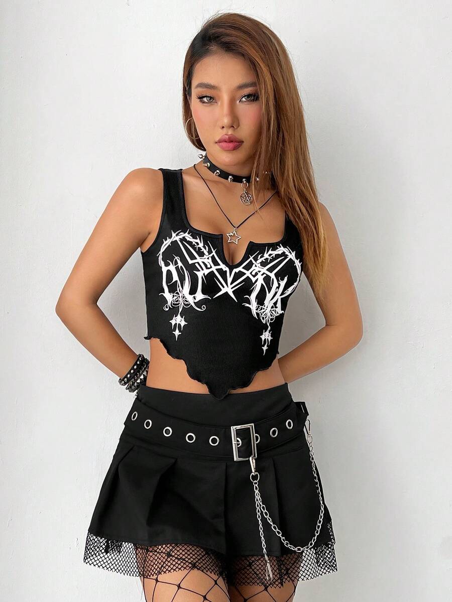 Canotta con stampa grafica scollo dentellato orlo asimmetrico