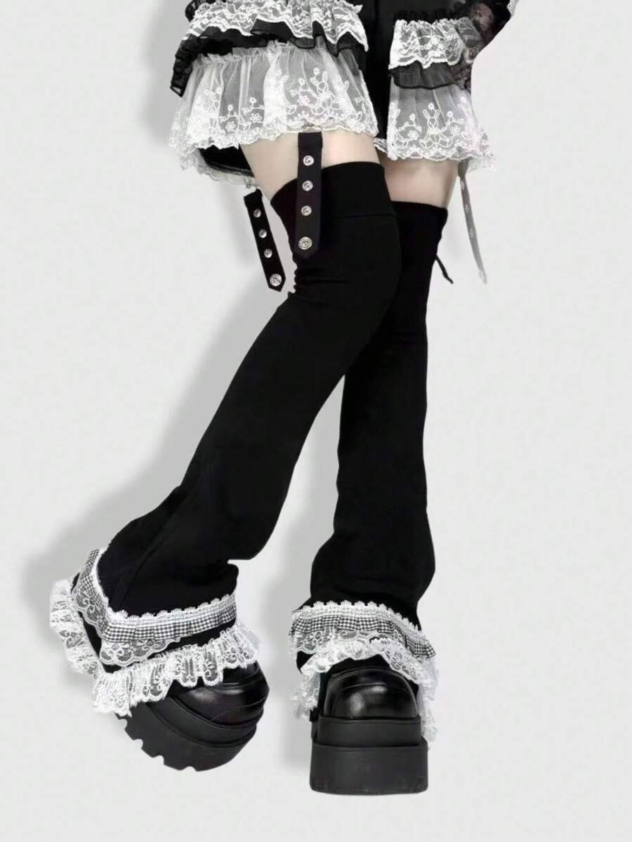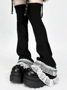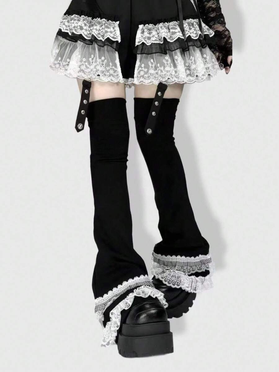 Grunge Punk 1 Paio di Calze Autoreggenti Nere Extra Lunghe per Donna