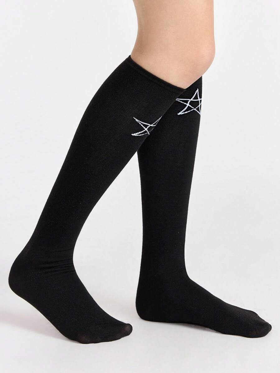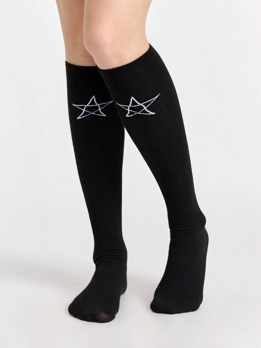 Grunge Punk 1 Paio Di Calzini Alti Monocolore Con Motivo A Stella Del Rock Scuro