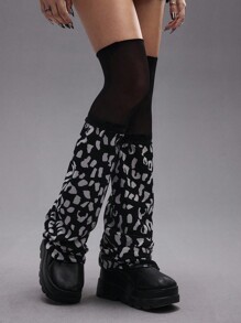 Grunge Punk 1 Paio di polsini minimalisti per gambe stile Y2K con stampa leopardata e pizzo, polsini sopra il ginocchio