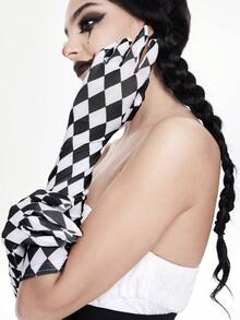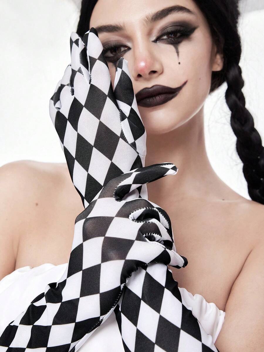 Grunge Punk 1 Paio di guanti senza dita stile punk in bianco e nero a quadri, guanti lunghi sexy di alta qualità in stile Y2K, guanti elastici di design di nicchia alla moda