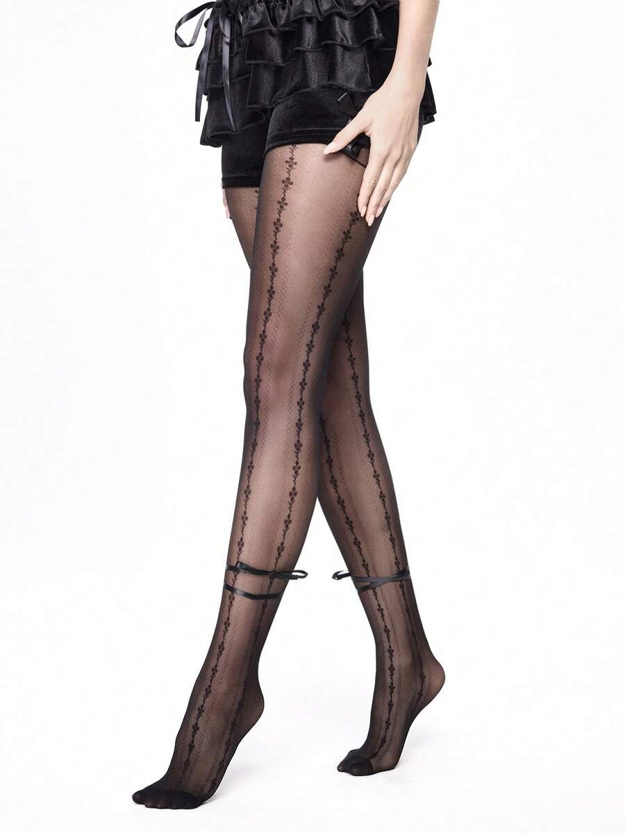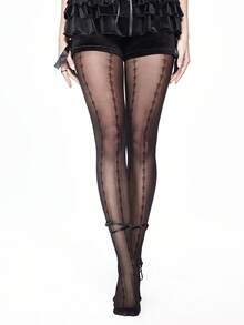 Grunge Punk 1 Paio di Collant Sexy con Stampa Scheletro, Collant Neri Tinta Unita in Stile Minimalista Y2K, Leggings Trasparenti ed Elastici Super Sottili