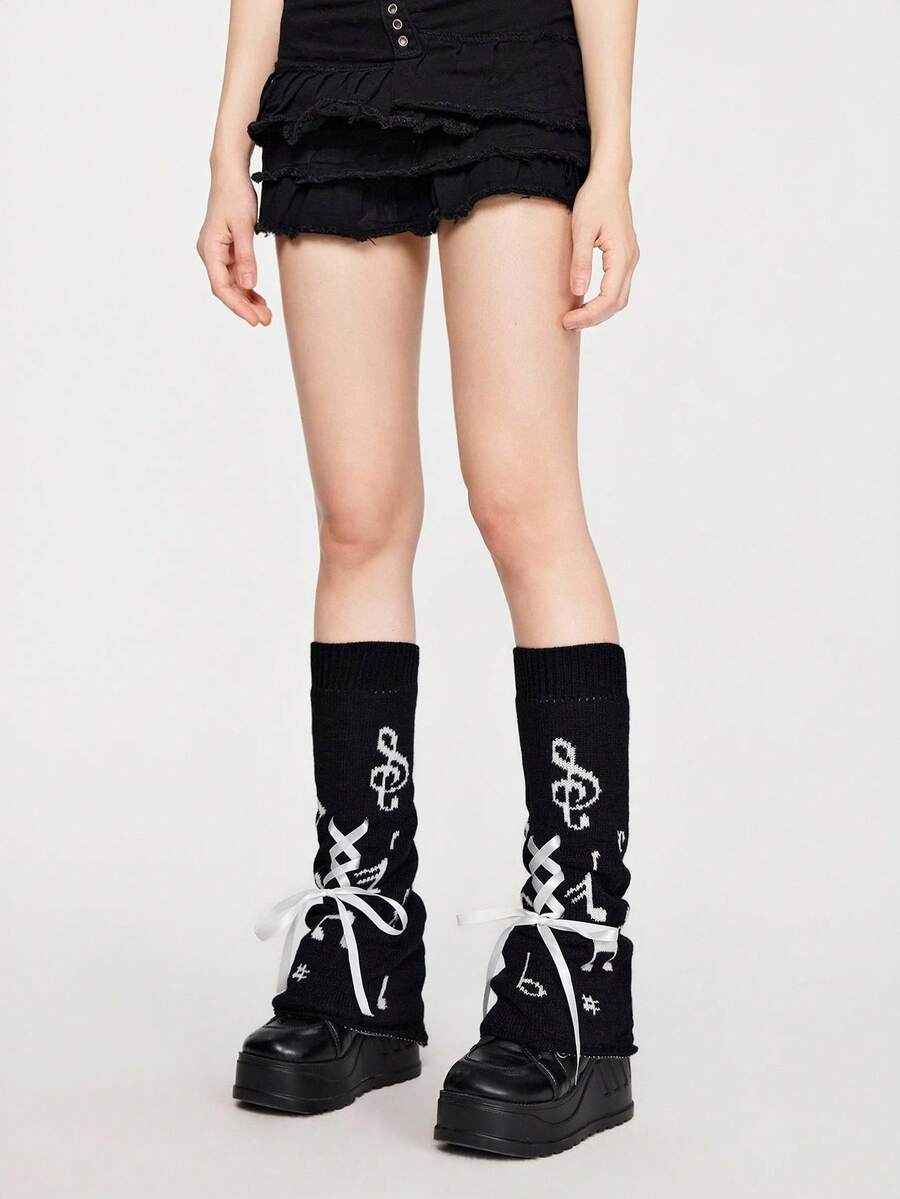 Grunge Punk 1 Paio di Scalda-gambe larghi da donna con simbolo di nota musicale, adatti per tutte le stagioni