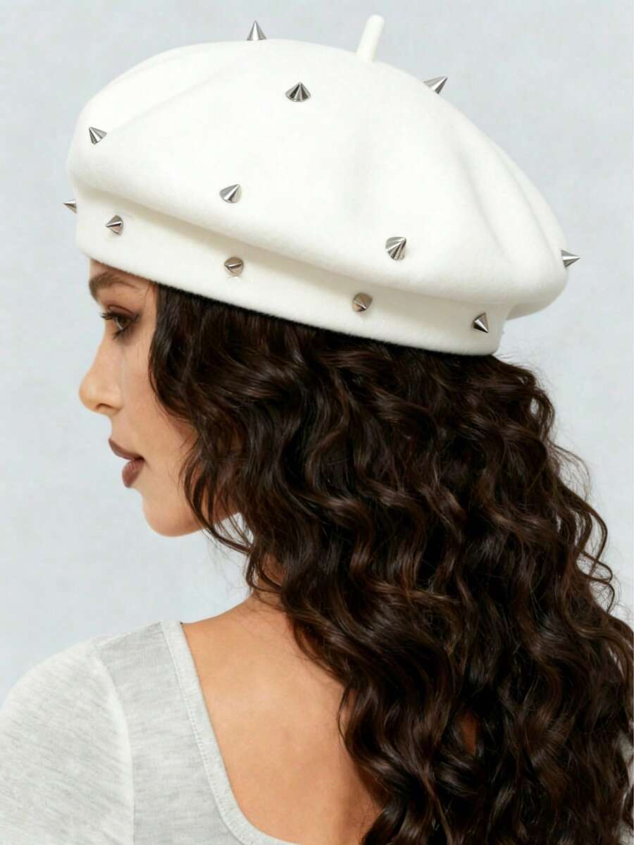 Grunge Punk 1 Pezzo Berretto alla moda in stile punk con borchie, cappello invernale caldo in lana, adatto per uso quotidiano e occasioni di festa