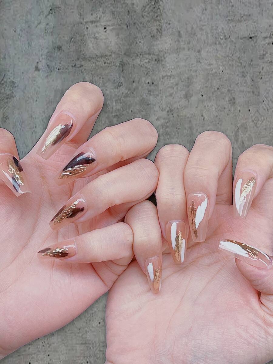 Grunge Punk 10 pezzi Unghie finte lungo ovale color block
