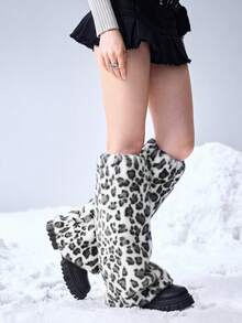 Grunge Punk 1 coppia di calzini riscaldanti e alla moda con stampa leopardata per donne