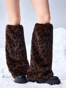 Grunge Punk 1 coppia di scaldamuscoli alla moda e caldi con stampa leopardata per donne