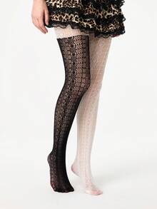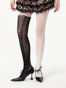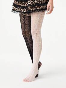 Grunge Punk 1 pezzo Collant/leggings elasticizzati asimmetrici in bianco e nero per donne