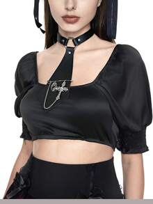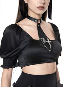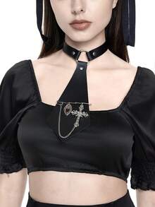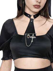 Grunge Punk 1 pezzo Collana con ciondolo a croce, stile choker in pelle sintetica PU personalizzato bondage, con anello rotondo stile cravatta formale punk