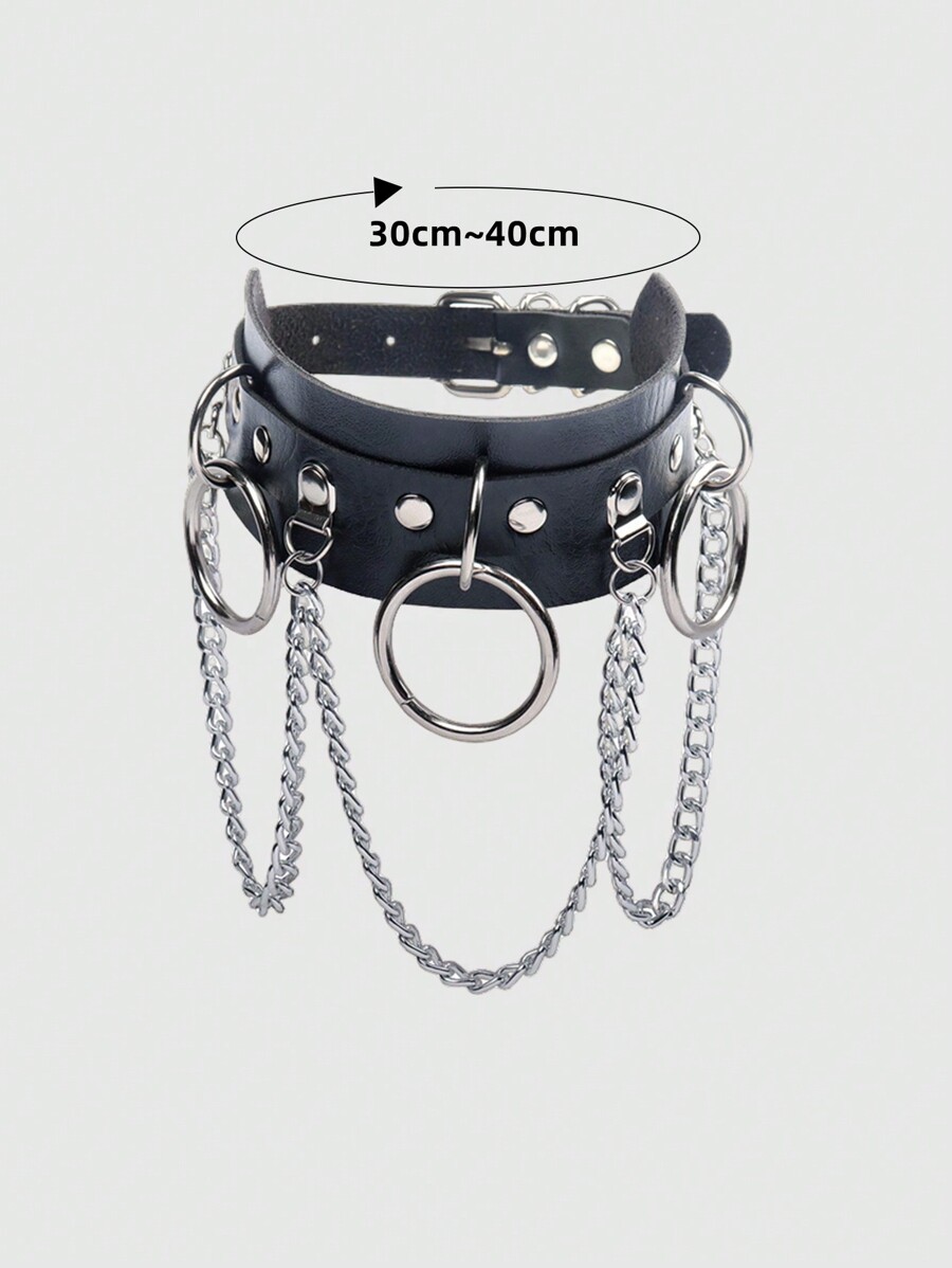 Grunge Punk 1 Pezzo Collana A Catena Circolare Con Nappine In PU Stile Punk Adatta Per L'abbigliamento Quotidiano Femminile