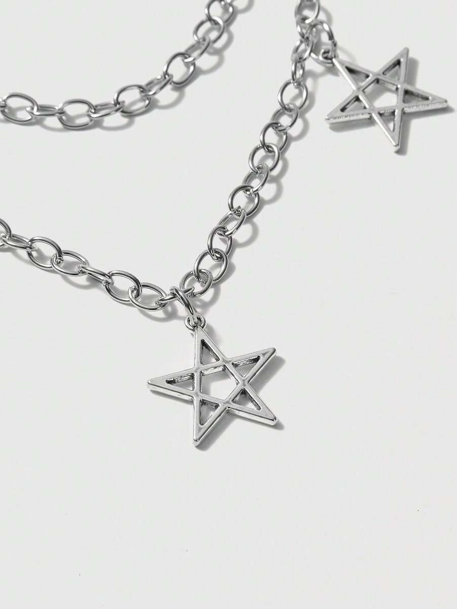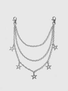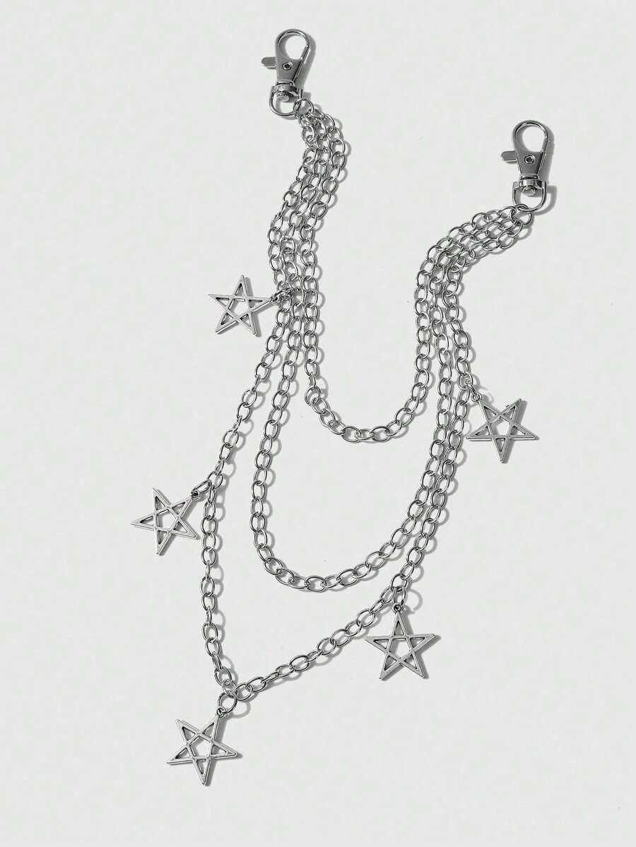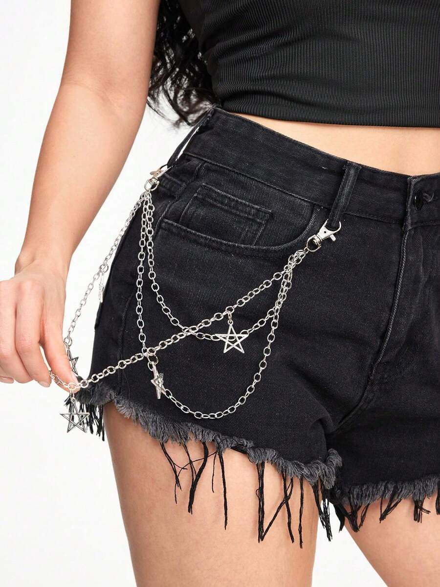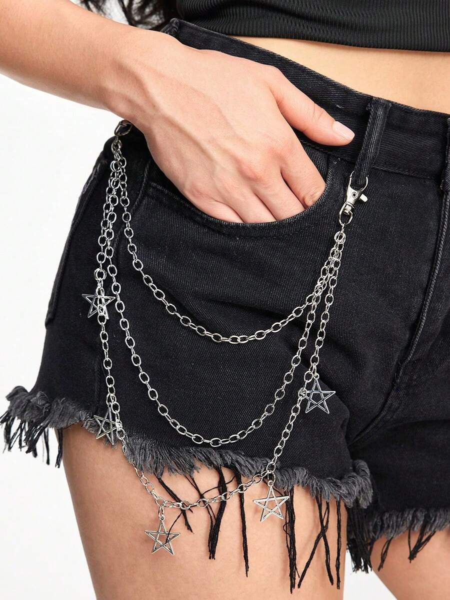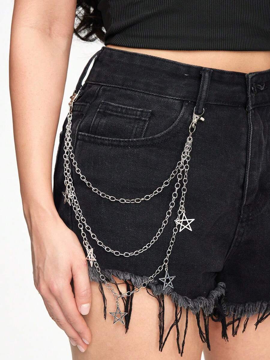 Grunge Punk 1 pezzo Catena per pantaloni in stile punk, stile vita da donna, in argento con decorazione a stella a cinque punte cava e triplo strato, adatta per uso quotidiano versatile