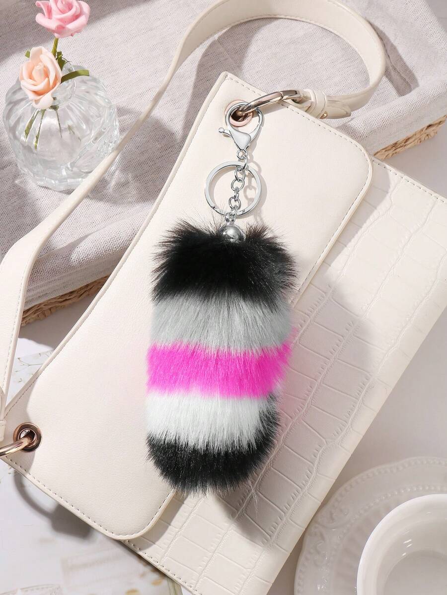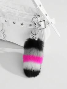Grunge Punk 1 pezzo Portachiavi e ciondolo per borsa con stampa animalier in pelliccia sintetica di stile retrò Y2K, elegante e dolce, adatto per ragazze e donne come accessorio quotidiano o regalo per festival