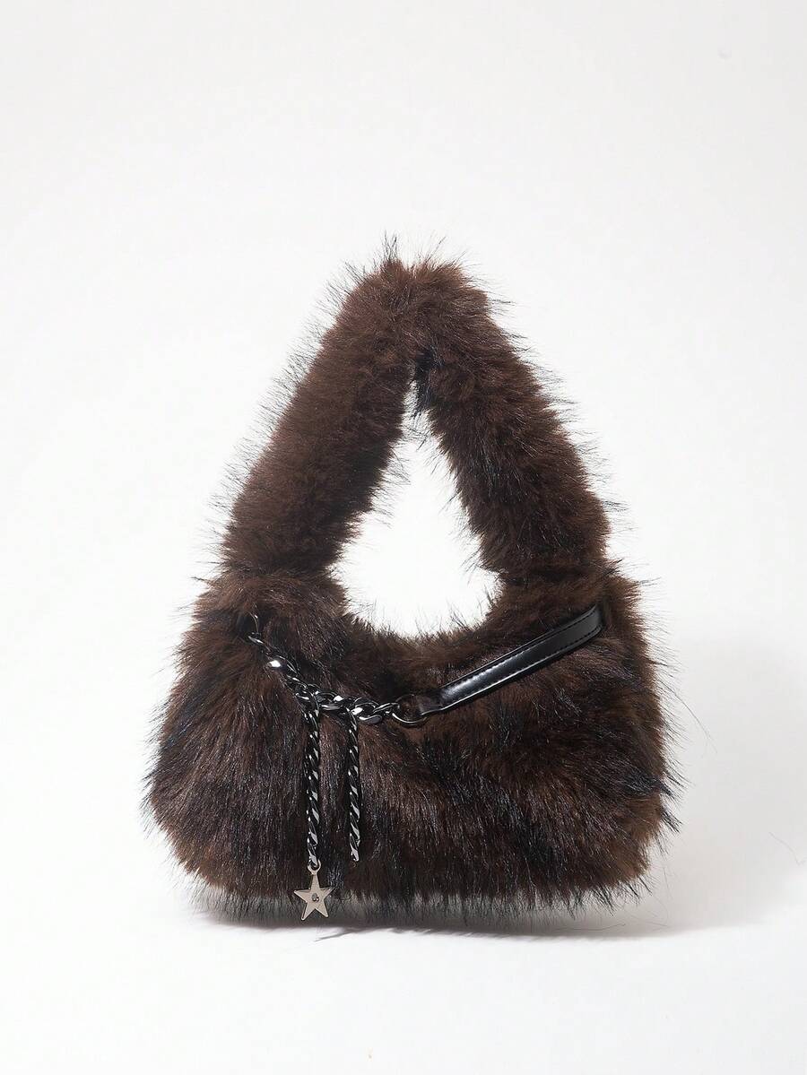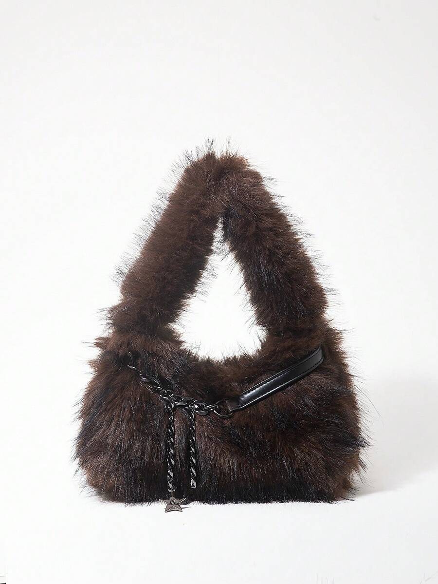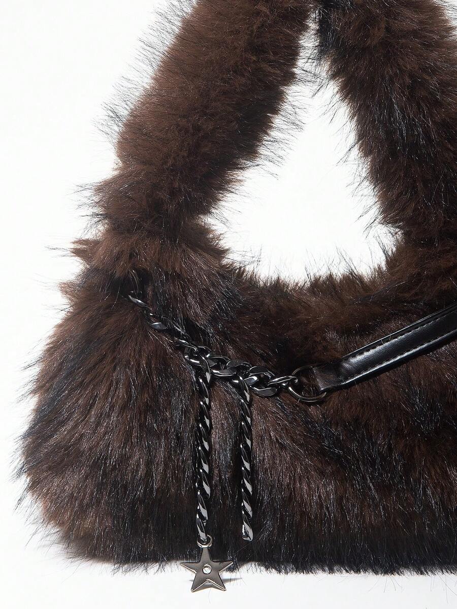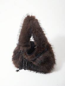 Grunge Punk Borse a spalla da donna stile anni 2000, borse da motociclista punk con borchie, borsette in pelliccia, portafogli autunnali e invernali, borse a forma di borsone (motivo casuale)