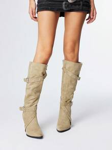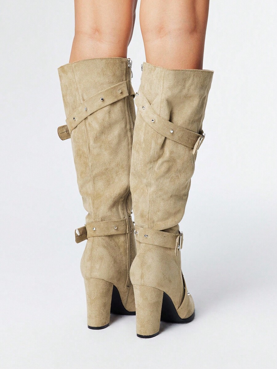 Grunge Punk Stivali alti sopra il ginocchio da donna con tacco chunky e punta affusolata, modello 2025, con fibbia e suola antiscivolo, versatili e adatti per cavalcare