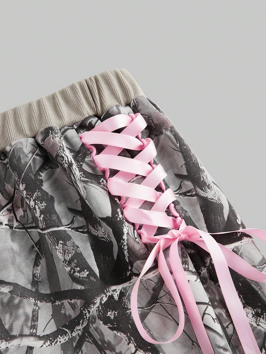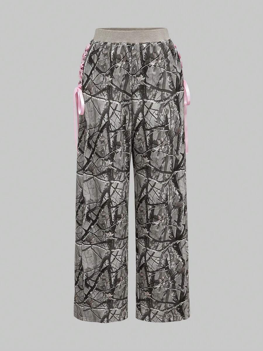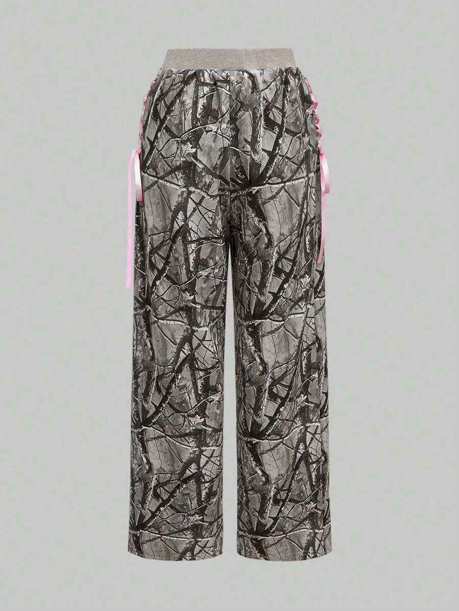 Grunge Punk 2 pezzi/set Abbigliamento donna stile Y2K, maglietta cropped con stampa a foglie e spalle scoperte, e pantalone dritto a vita alta con dettagli in contrasto, adatto per primavera/autunno