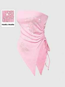 Grunge Punk Top da donna con design asimmetrico, plissettato, con paillettes, stile punk rock da festival musicale