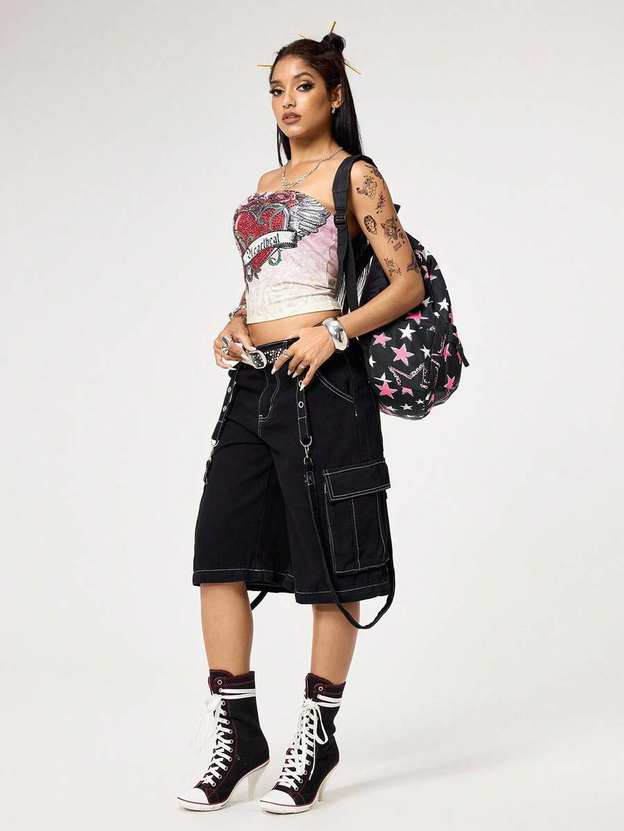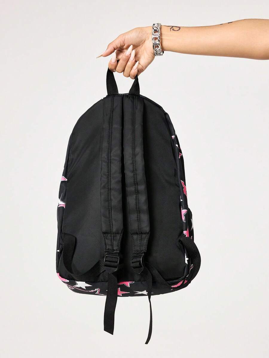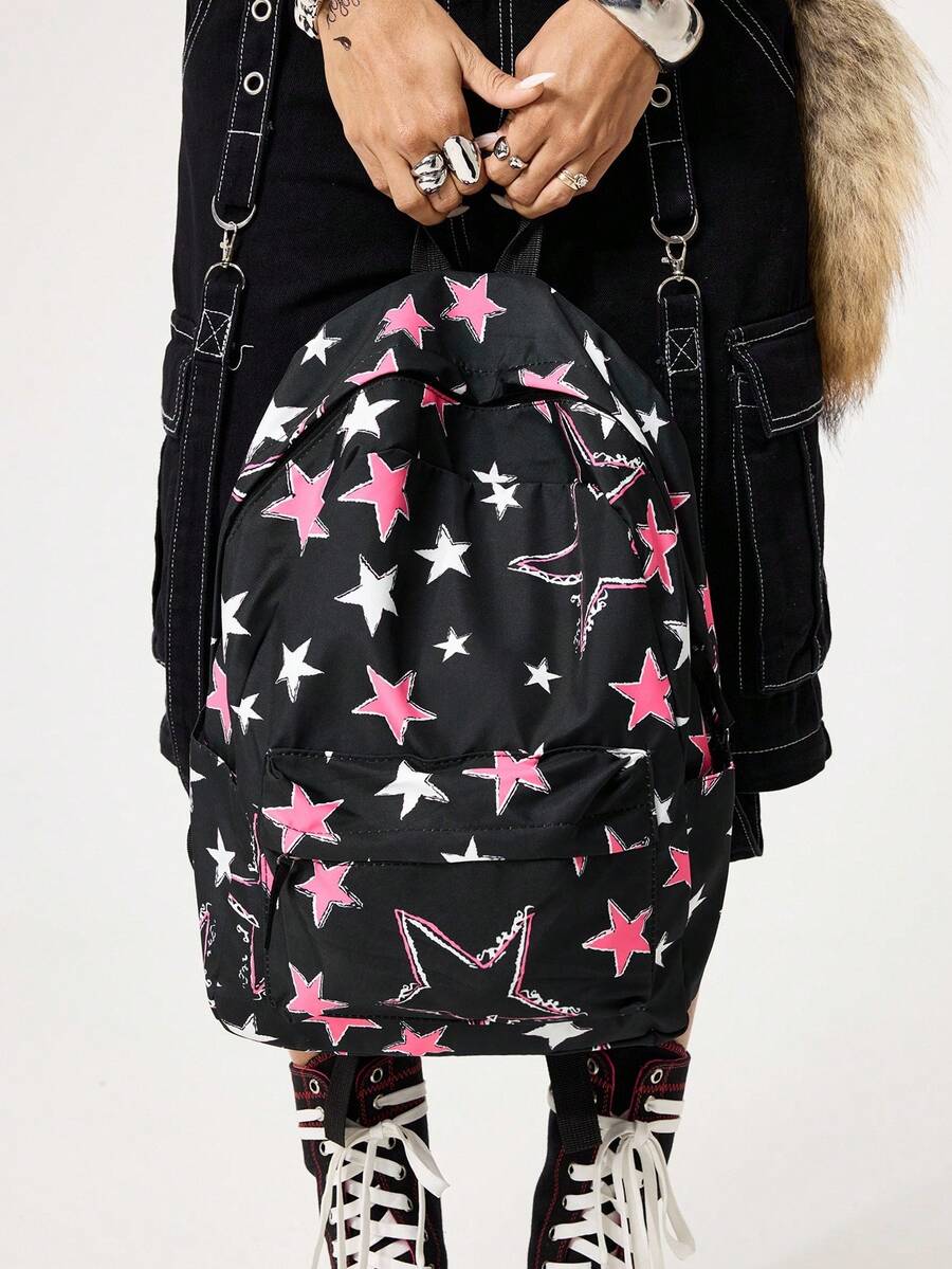 Grunge Punk Zaino multiuso con stampa a stelle in stile college, design asimmetrico a blocchi di colore di moda Y2K, adatto per scuola, vacanza, viaggio, pendolarismo