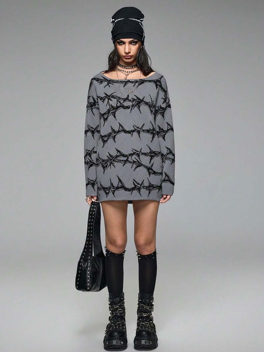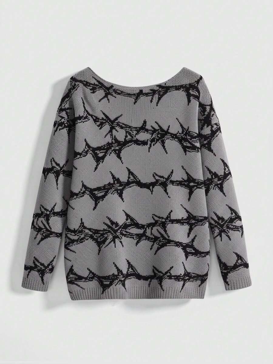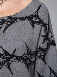 Grunge Punk Maglione oversize a motivo di spine, stile punk, per autunno/inverno