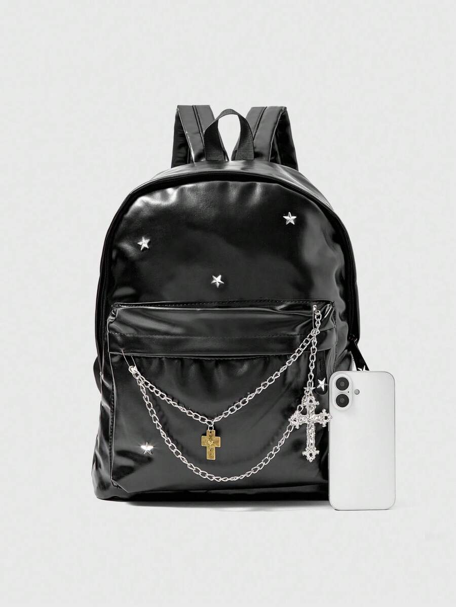 Grunge Punk Zaino con doppia catena, di moda per la scuola, per il ritorno a scuola