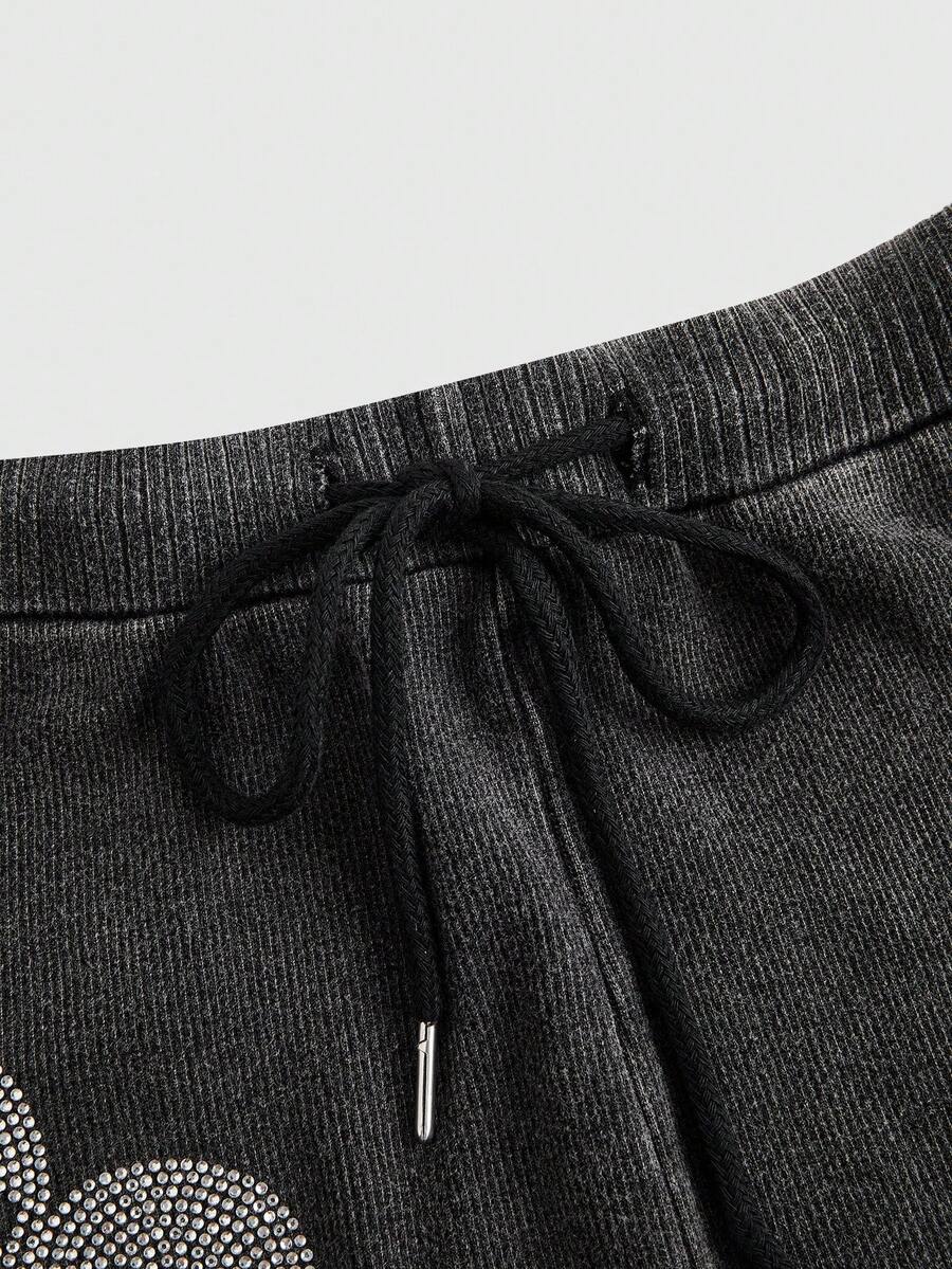 Grunge Punk Casual Shorts Alla Moda Mini Con Elastico In Vita, Con Stampato Tie Dye Teschio Ornato Di Strass, Per Le Donne In Vacanza