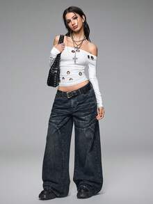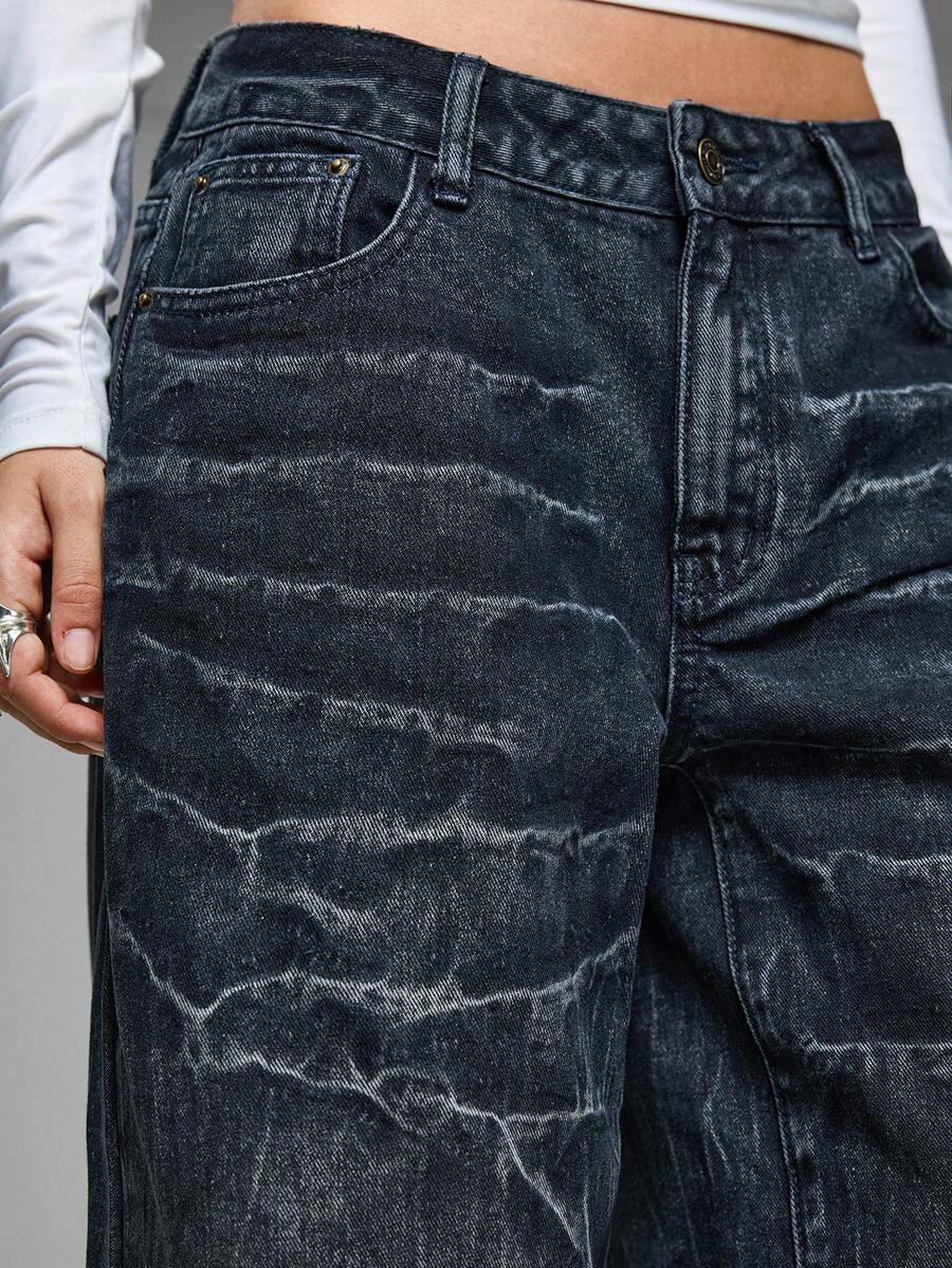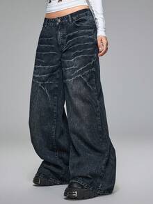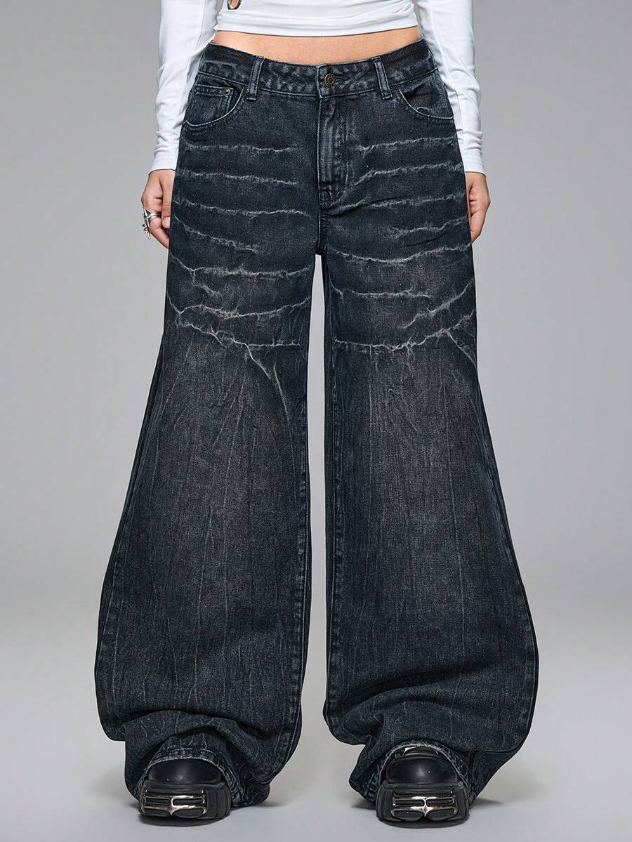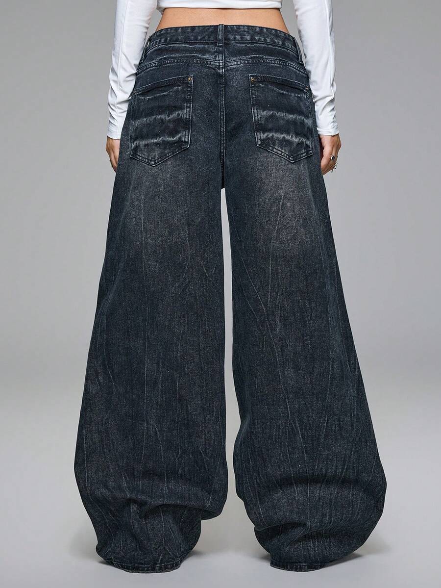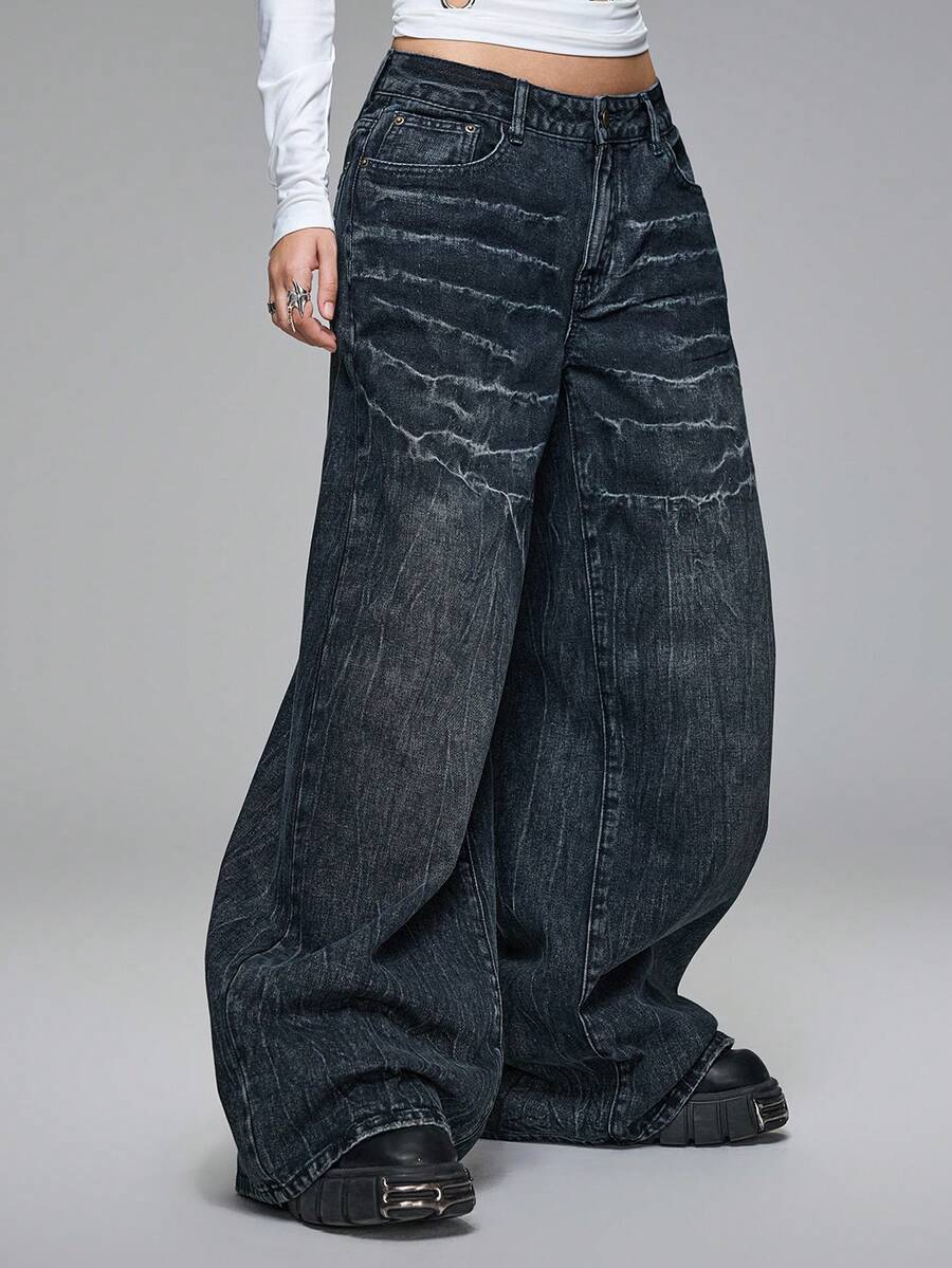 Grunge Punk Jeans casual da donna a vita super bassa, gamba ampia, effetto lavato e stropicciato, stile punk con dettagli a fulmine