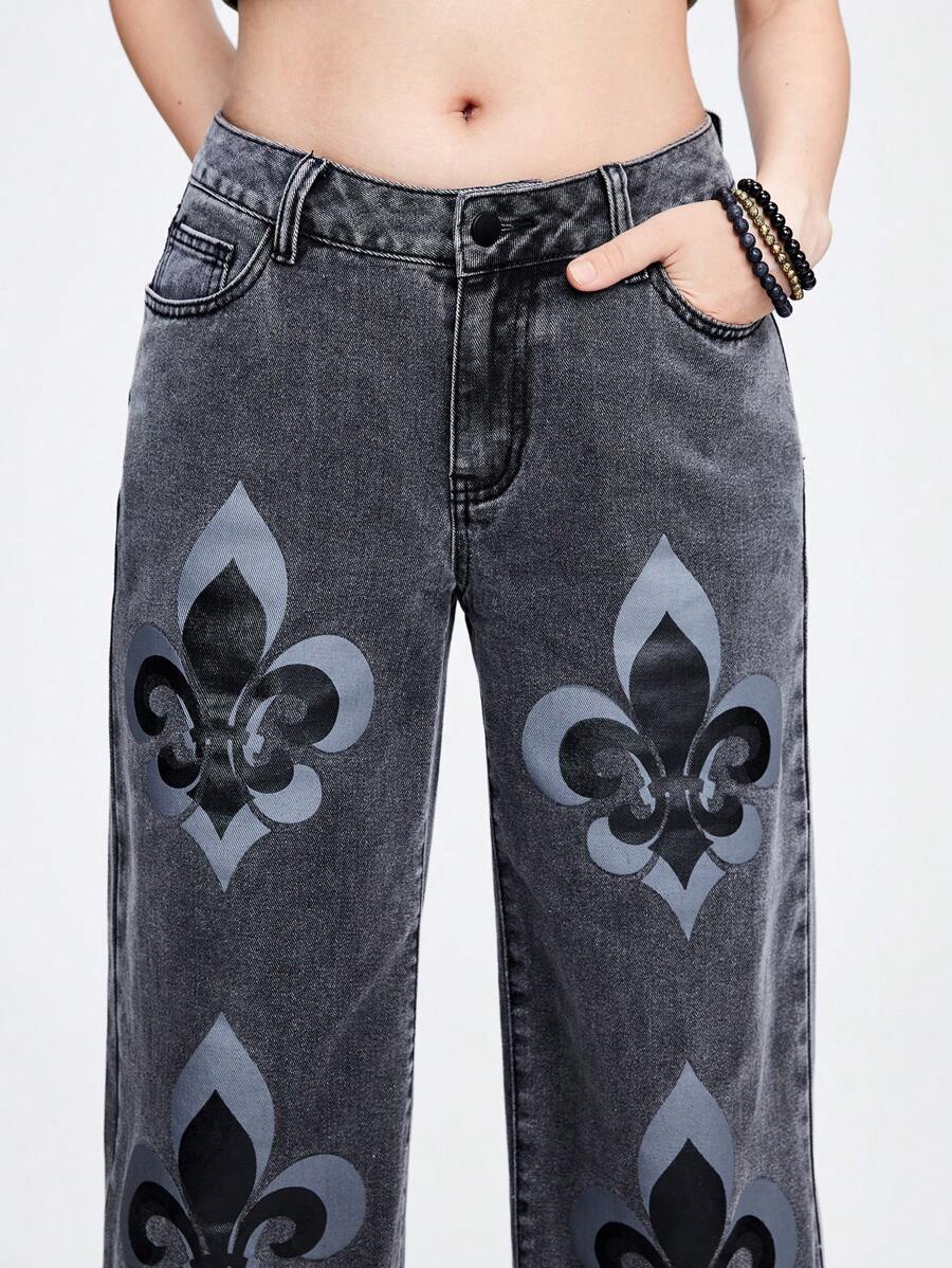 Grunge Punk Jeans A Gamba Dritta Stampati Con Blocchi Di Colore