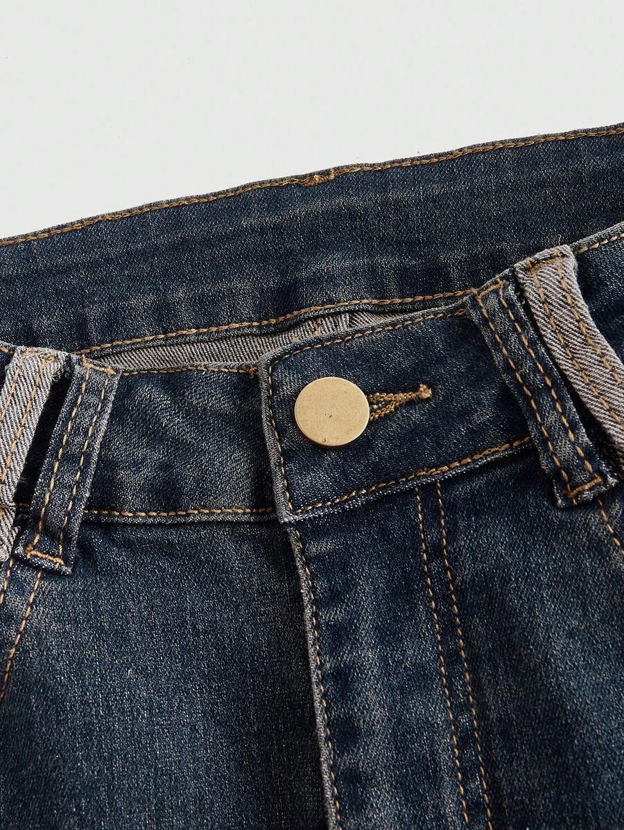 Grunge Punk Jeans a gamba svasata bordo a contrasto orlo a fessura