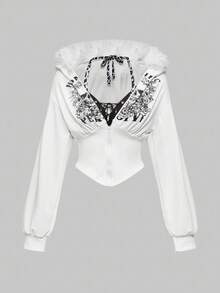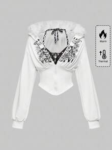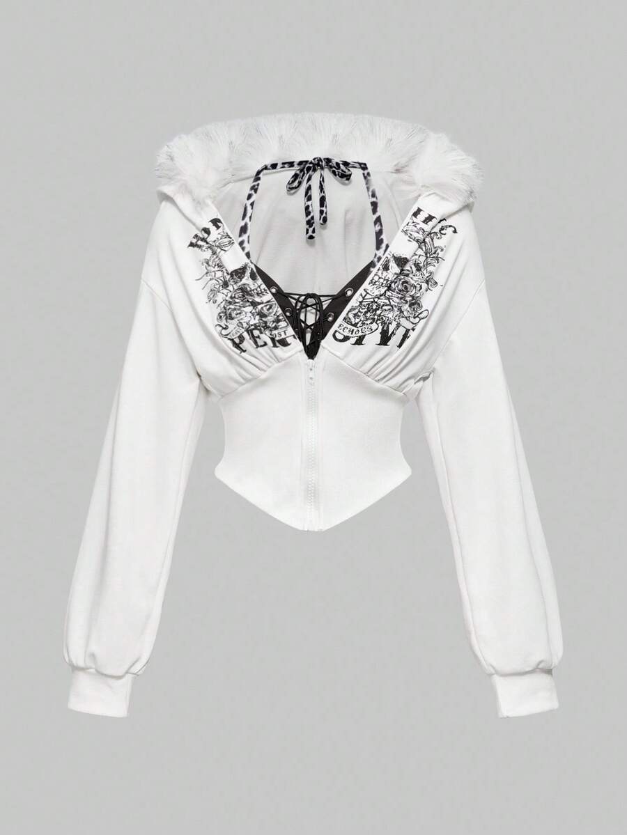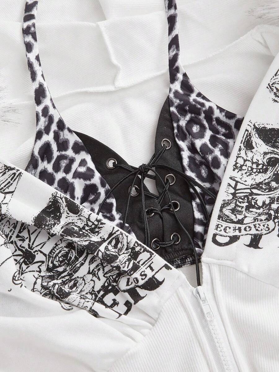 Grunge Punk Felpa da donna aderente con stampa a croce e teschio punk in 2 in 1, con inserti in stampa leopardata