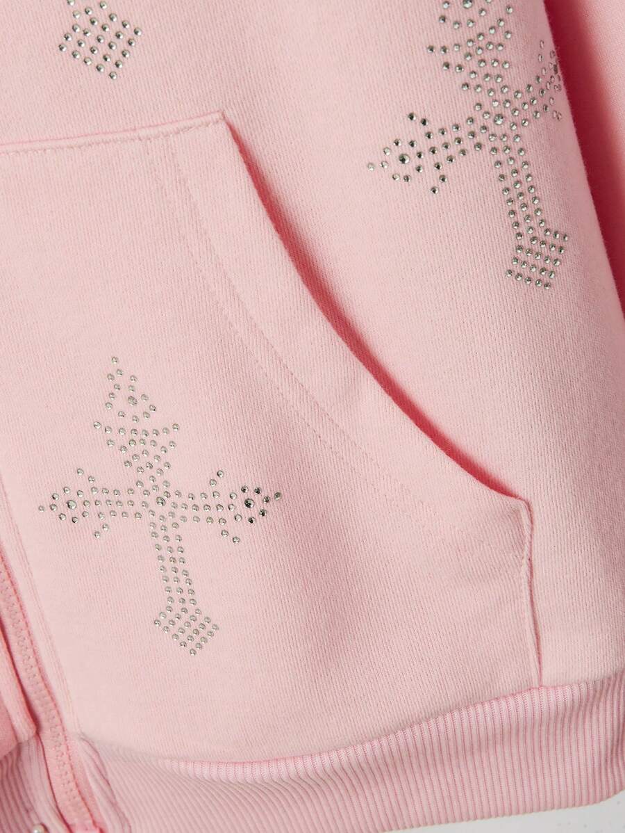 Grunge Punk Felpa con cappuccio incrociato con strass con zip con coulisse