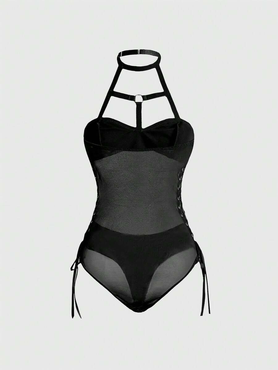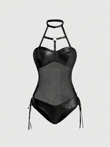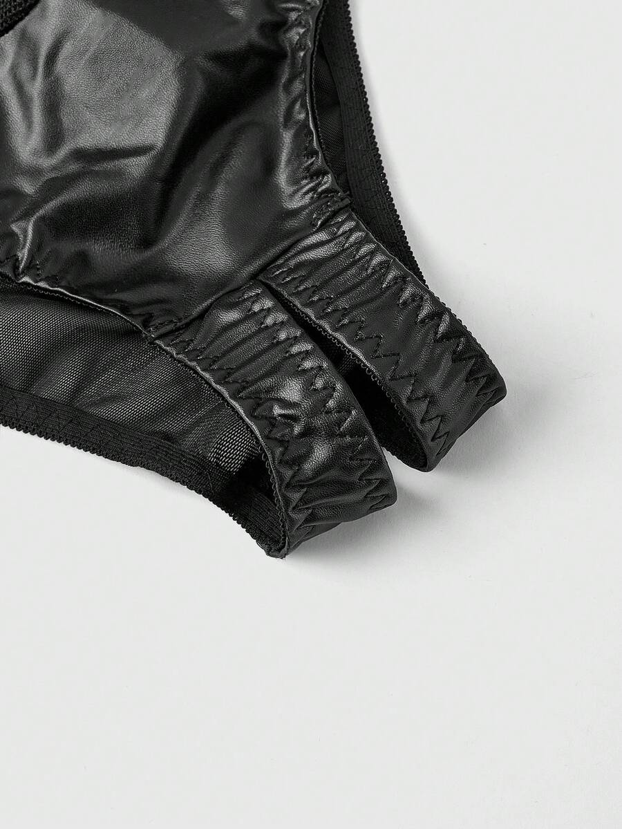Grunge Punk Body sexy in PU stile punk gotico con scollo ad aletta e cavallo aperto