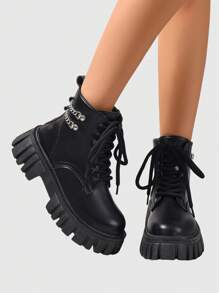 Grunge Punk Stivali alla caviglia con tacco alto platform, stile punk rock britannico, con decorazioni in catena metallica e borchie
